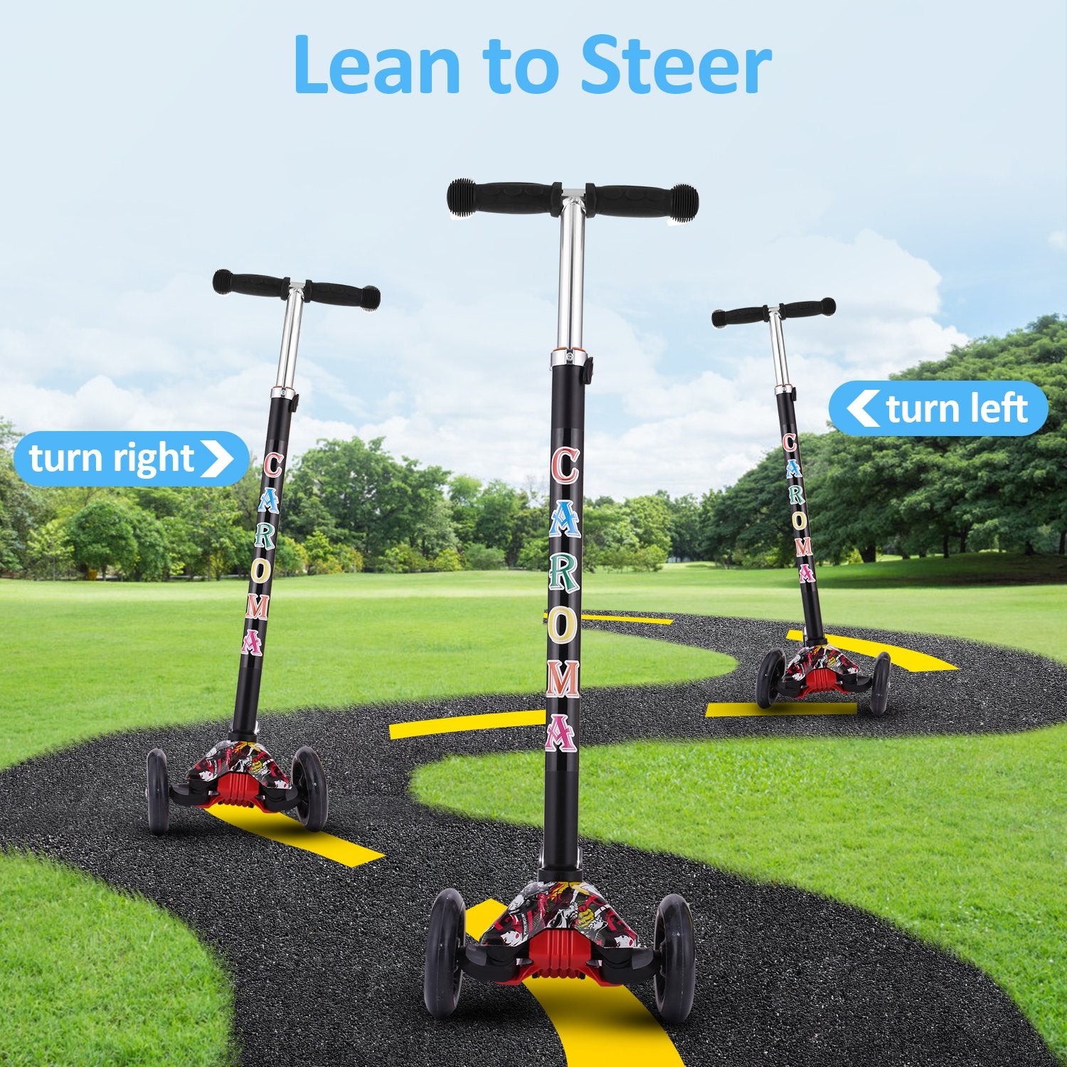 - The toddler scooter with unique gravity steering mechanism can easy turn right or left for kid. Offer greater control and maneuverability, easy to control, ensure more safety, builds young rider's confidence.