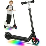 🌞[Excellent Design] The Caroma electric scooter for kids ages 6-10 is equipped with a colored light system on the front wheel and pedal. The flashing light can attract children's attention, making your child the main character. The light also flashes red when braking, which can improve safety. Combined with reflective stickers on the front and rear wheels as well as the slant tubes, it protects children's rides.