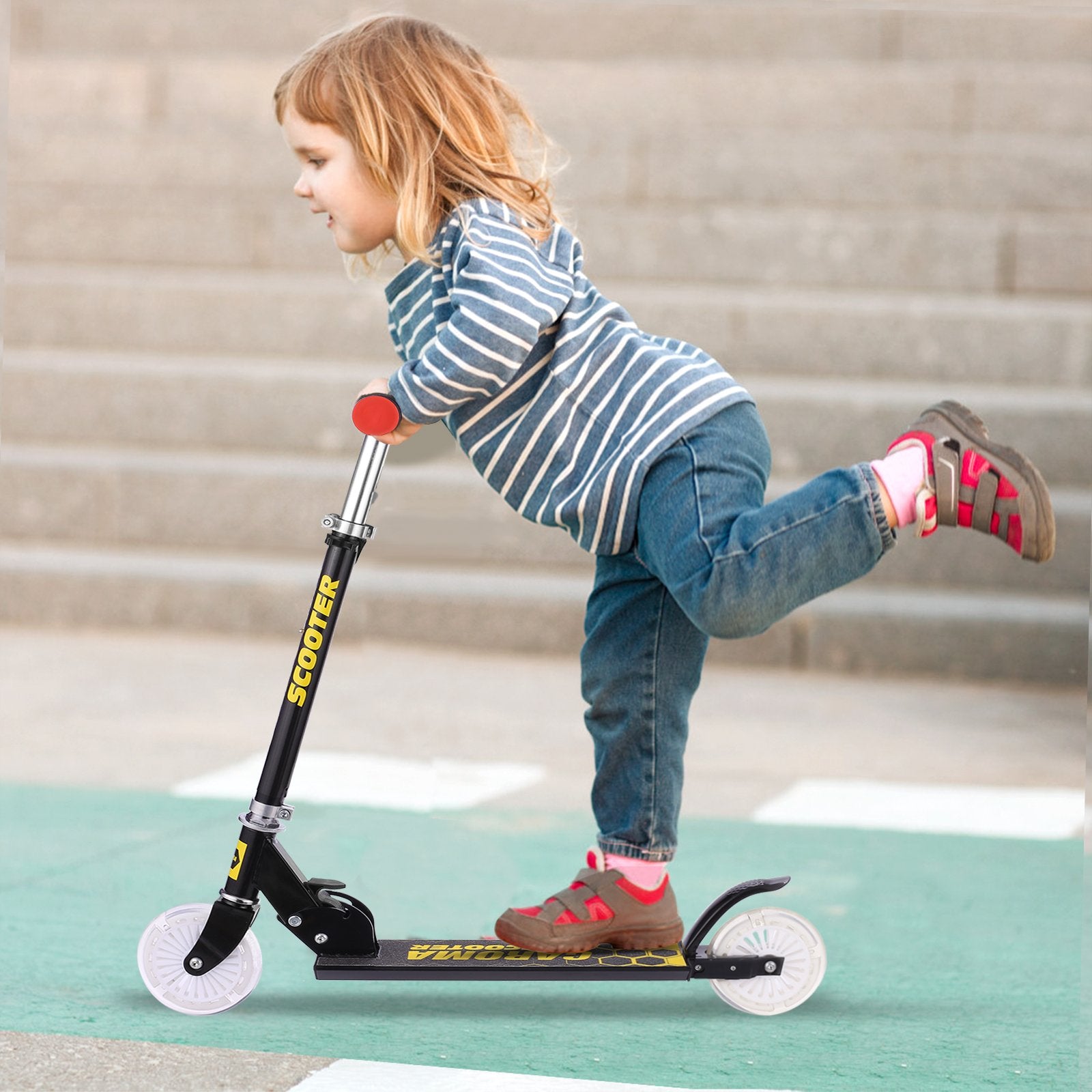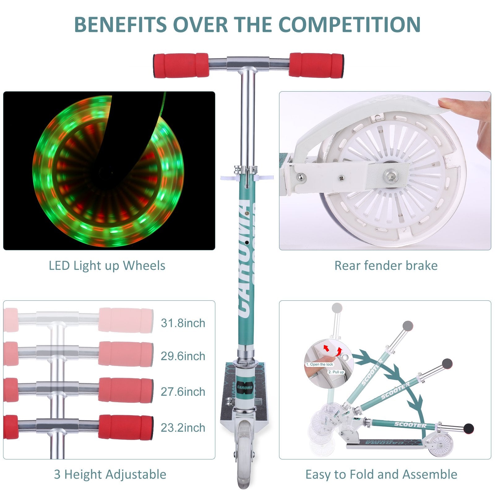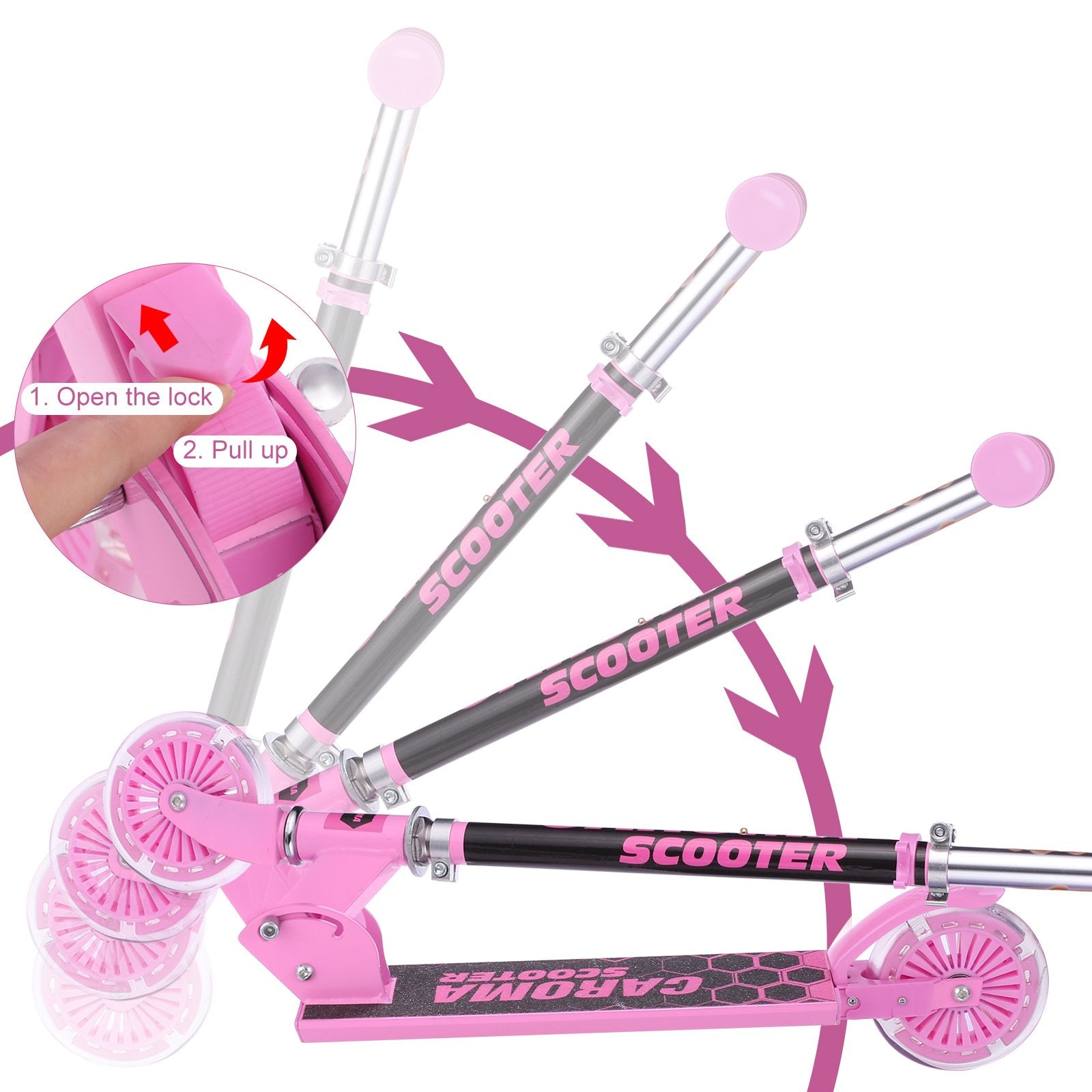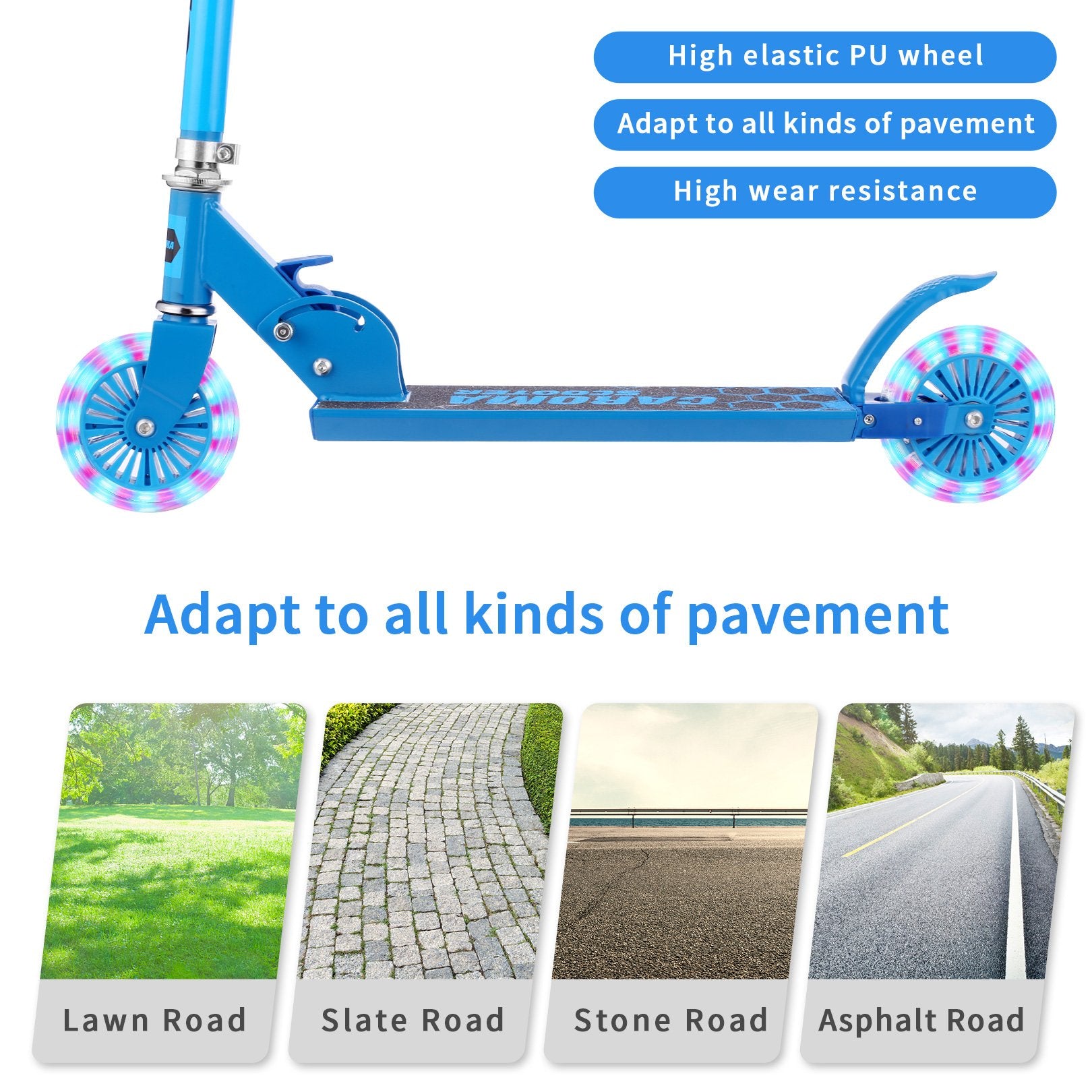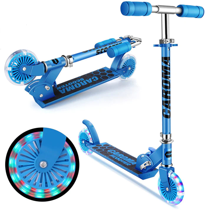 Caroma Kids Girls Boys Kick Scooter PU Flashing 2 Wheels Wide Deck