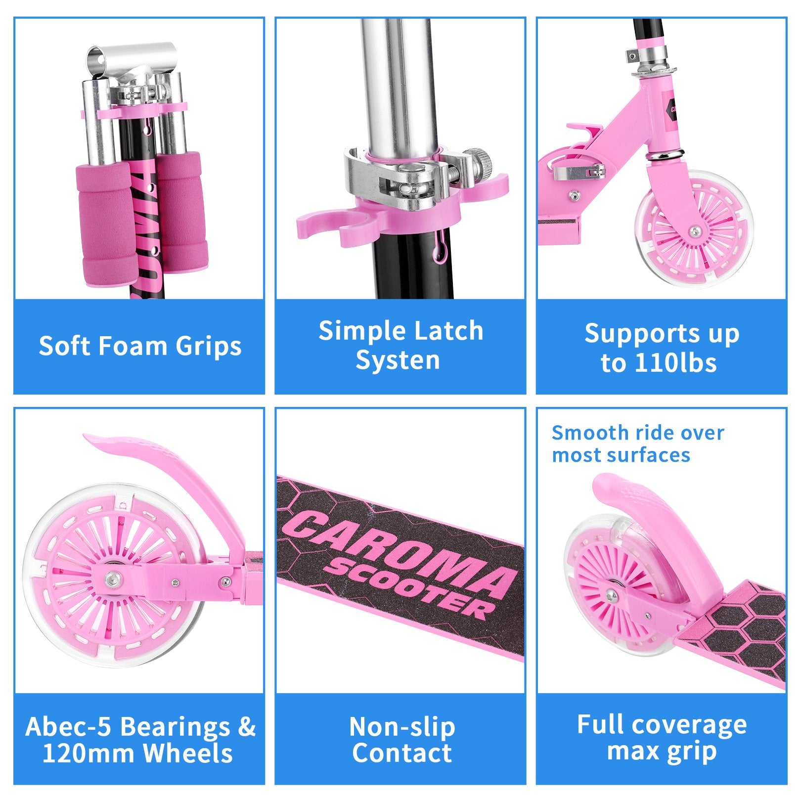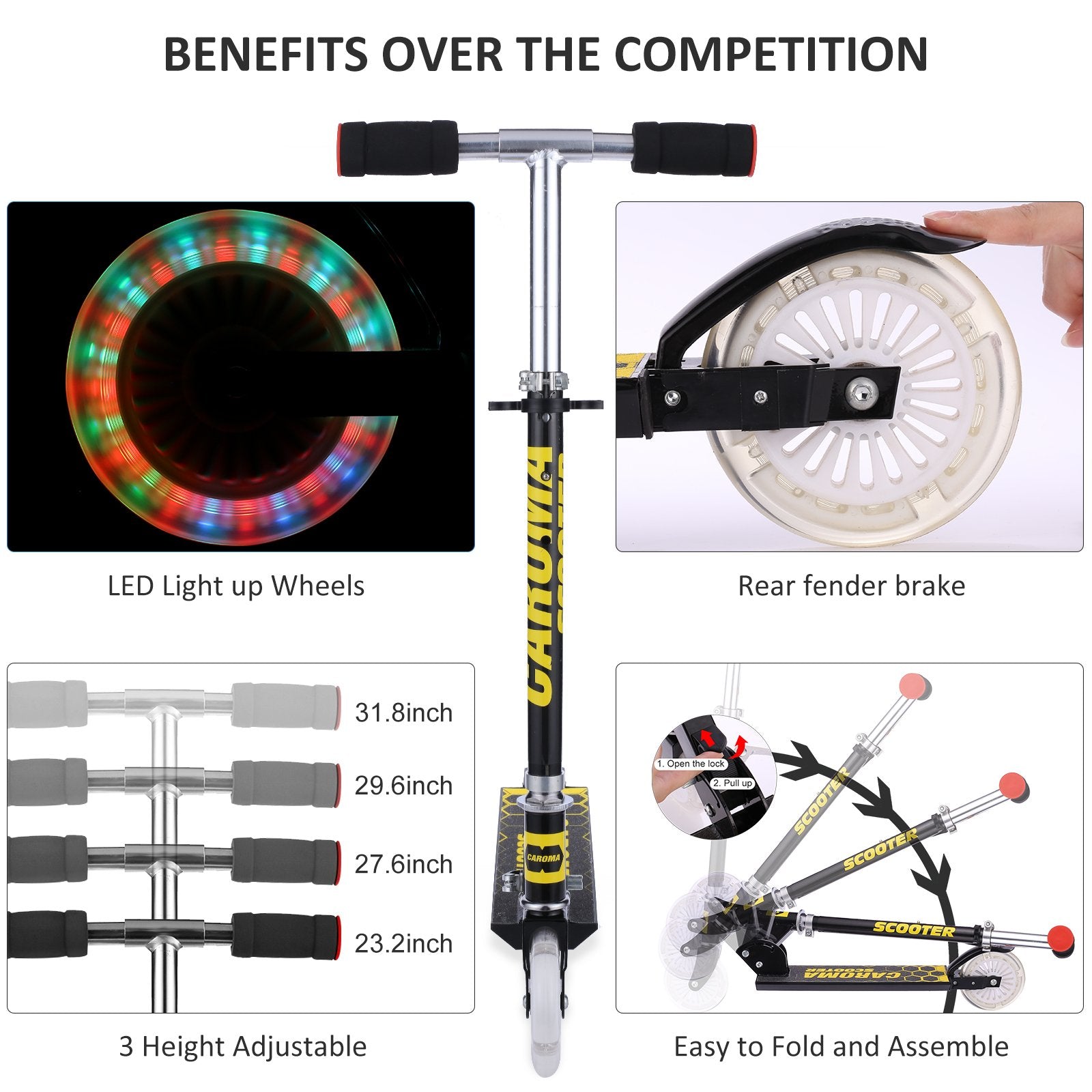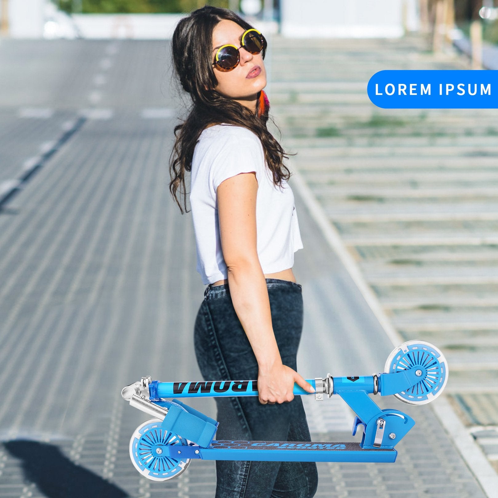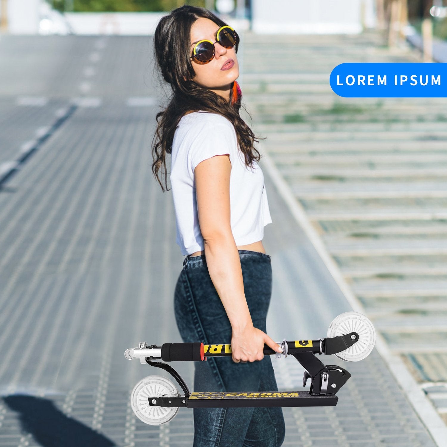 Caroma Kids Girls Boys Kick Scooter PU Flashing 2 Wheels Wide Deck