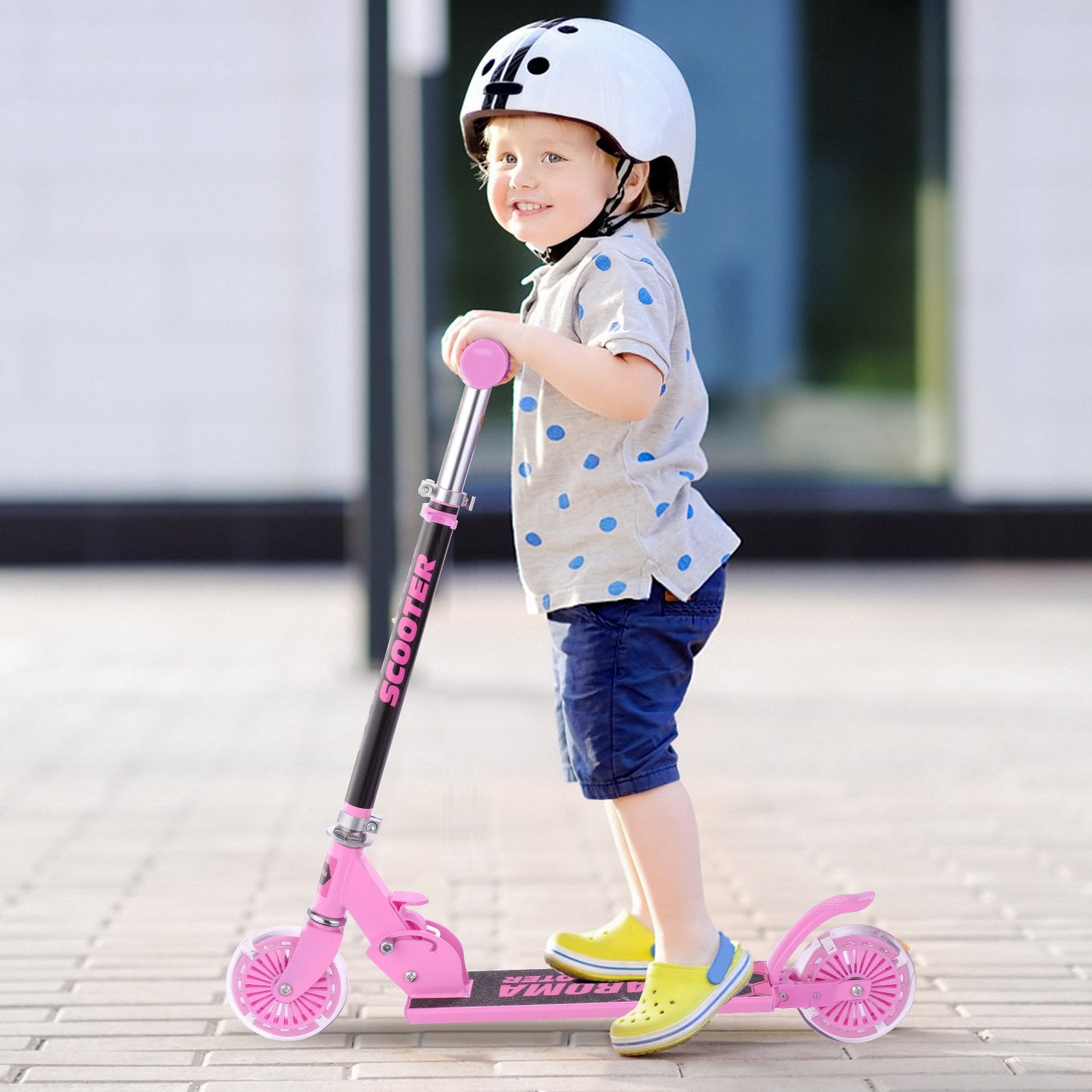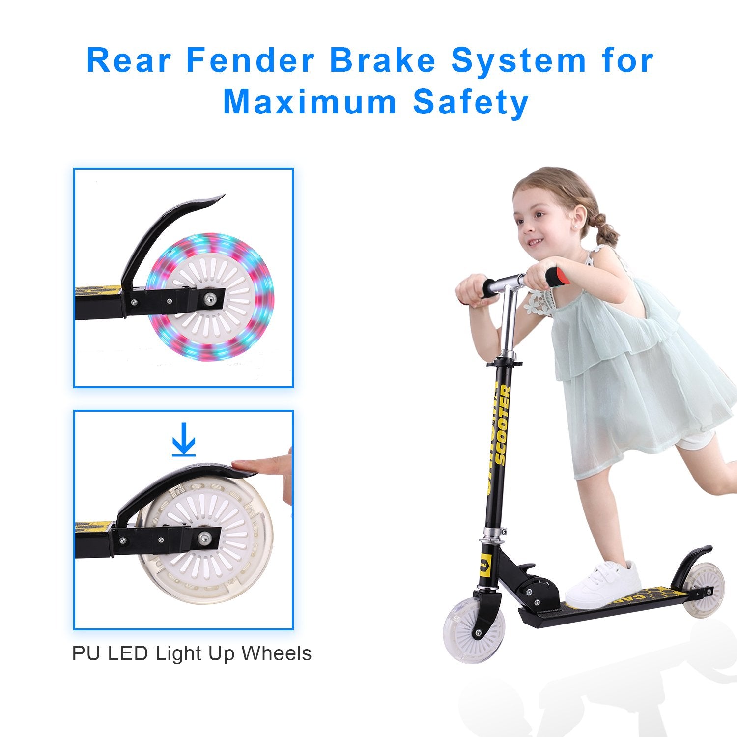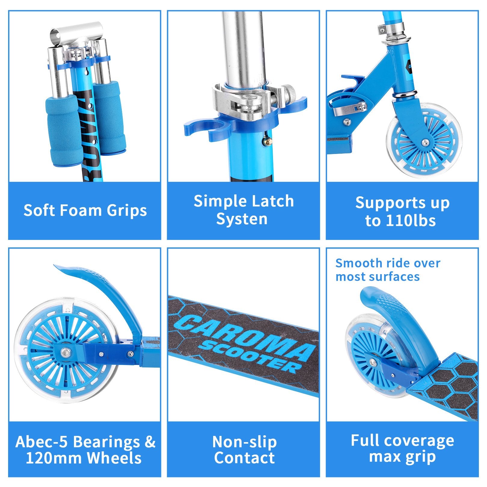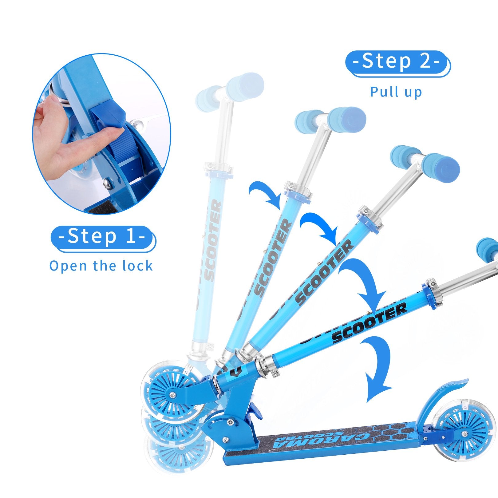 Caroma Kids Girls Boys Kick Scooter PU Flashing 2 Wheels Wide Deck