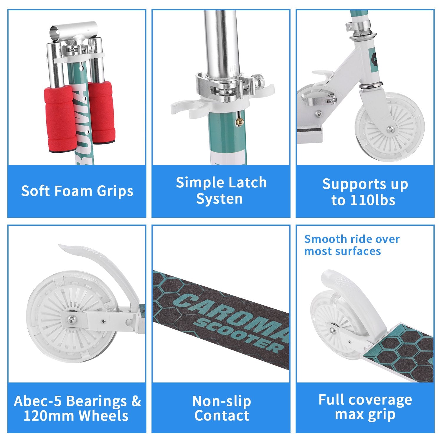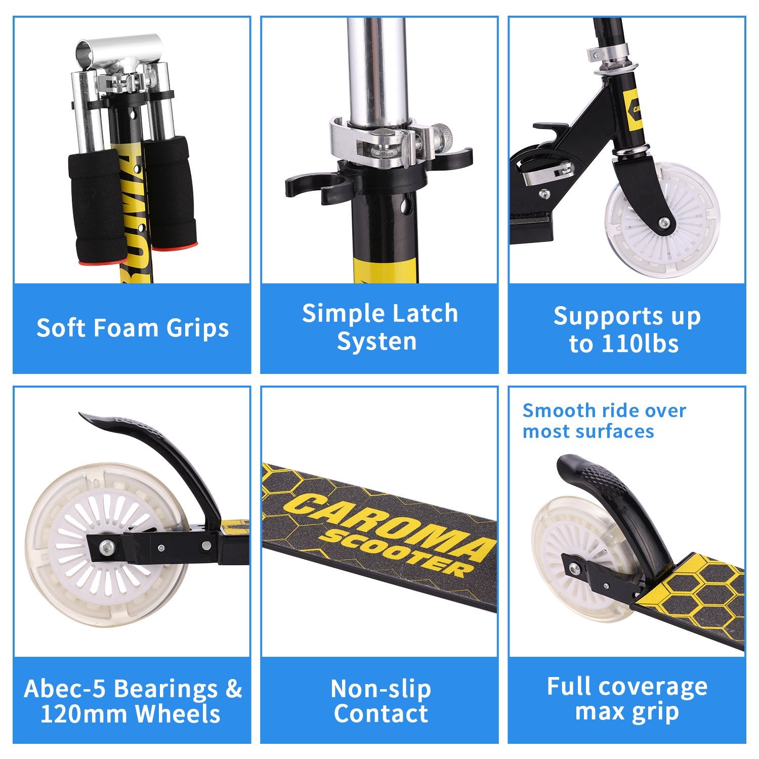 - 2 Wheels scooter with adjustable height and widen deck max support weight 110lbs(50kg).