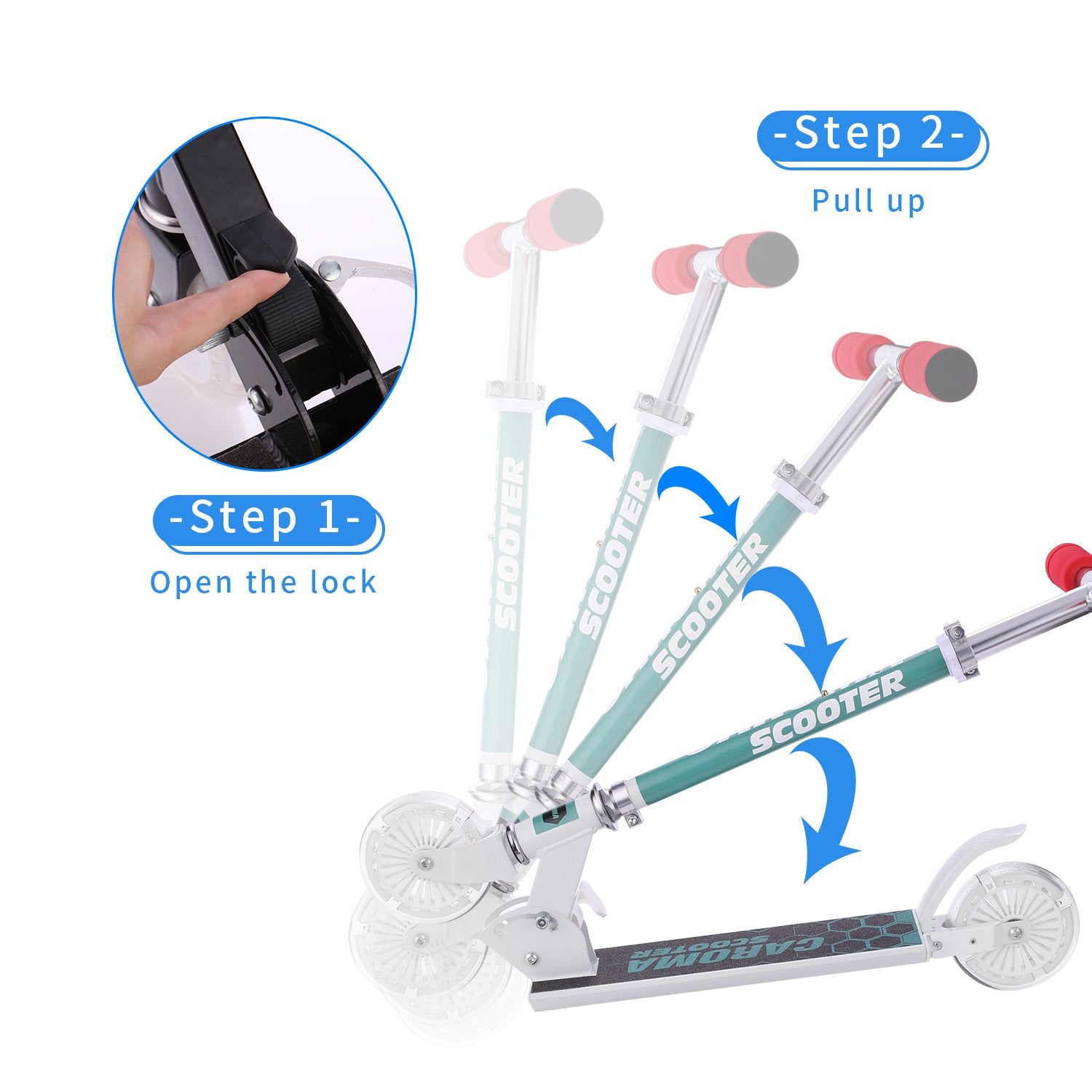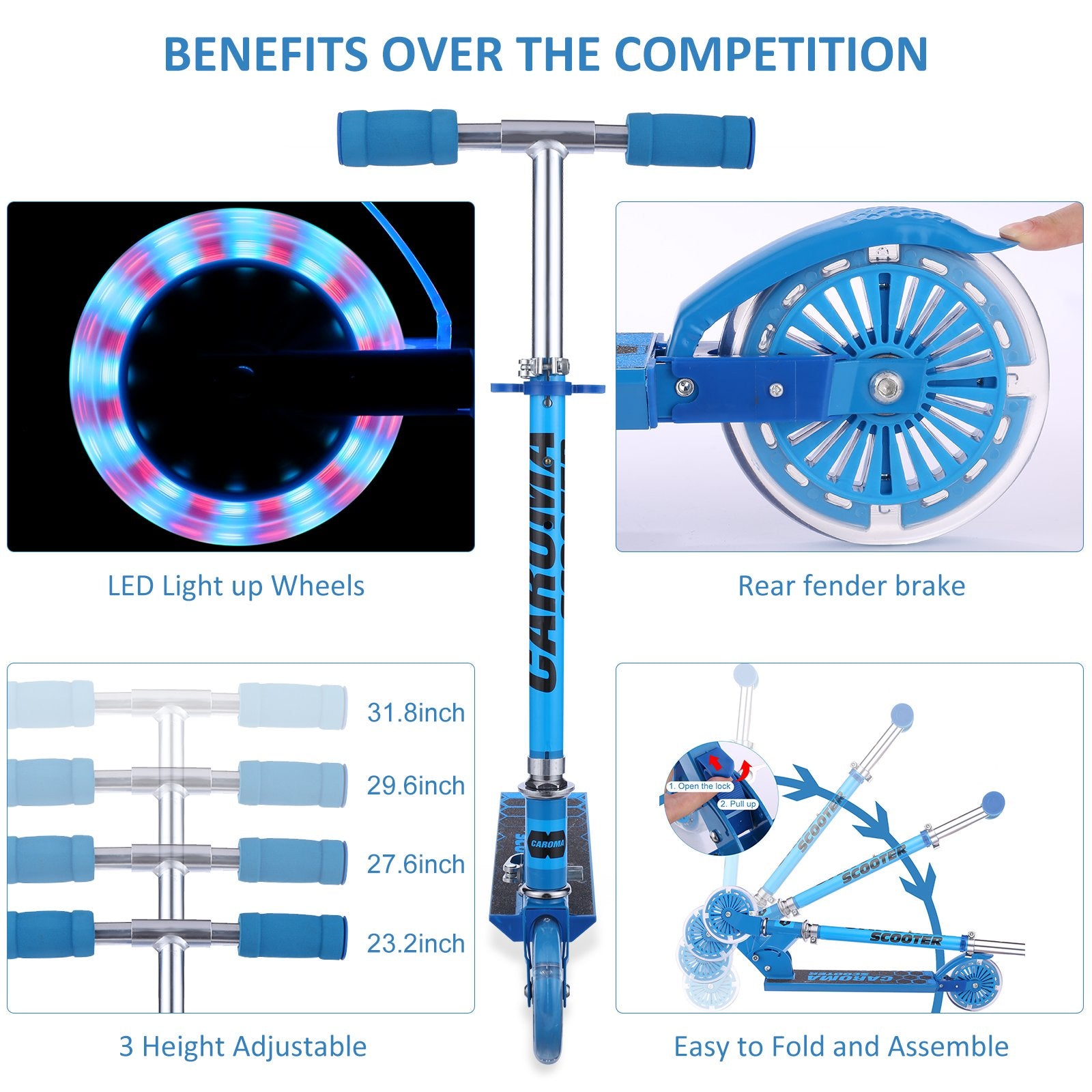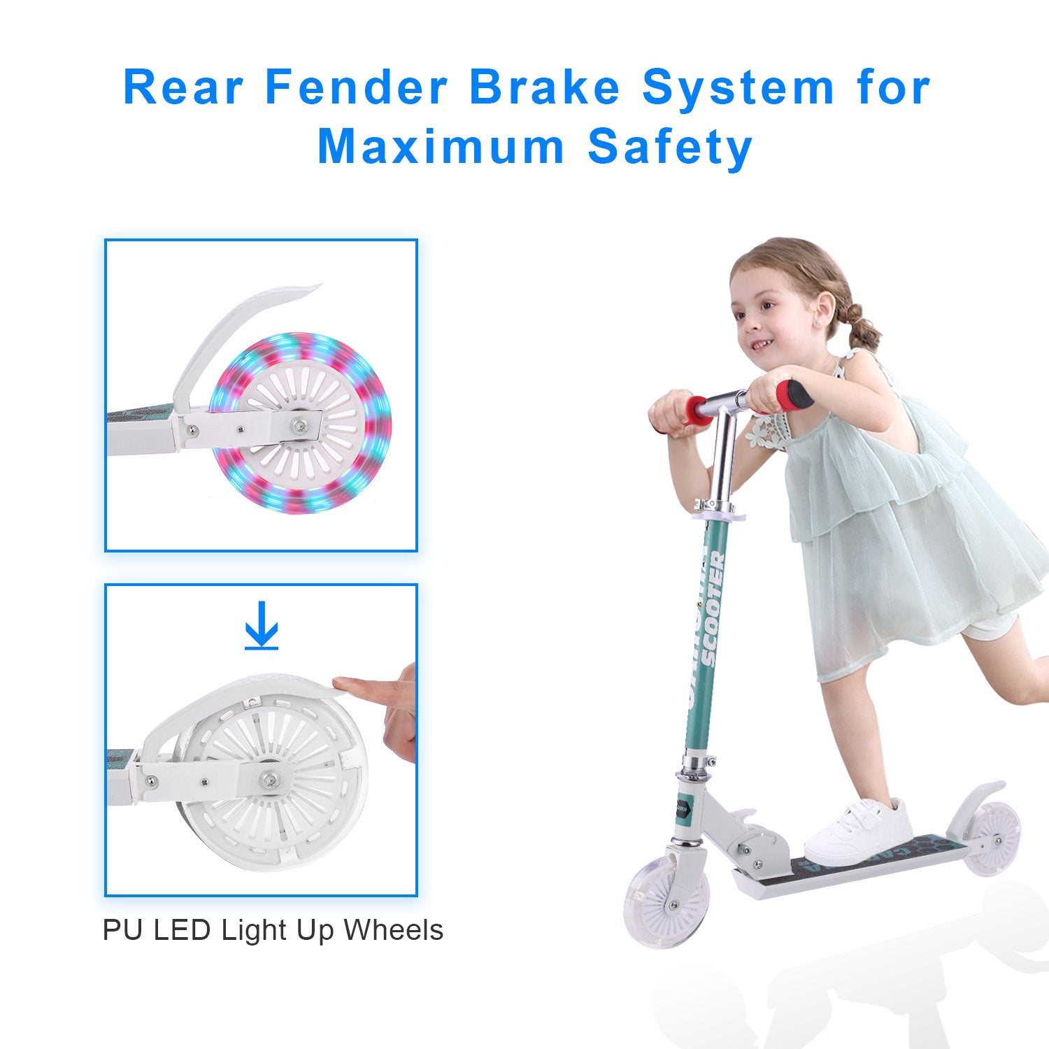 - Kick scooter built-in motion sensor, motion activate wheels' light, lights will up when the wheels spinning, and lights will off after your riding.