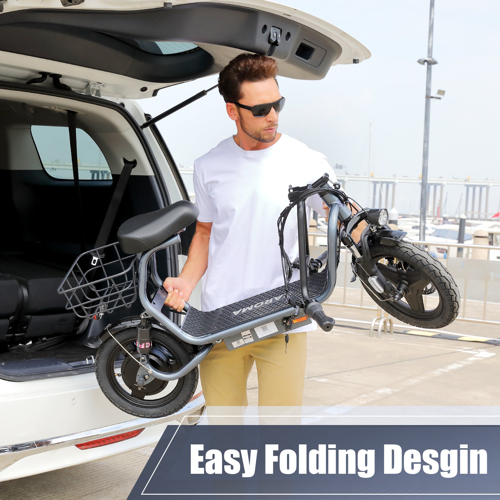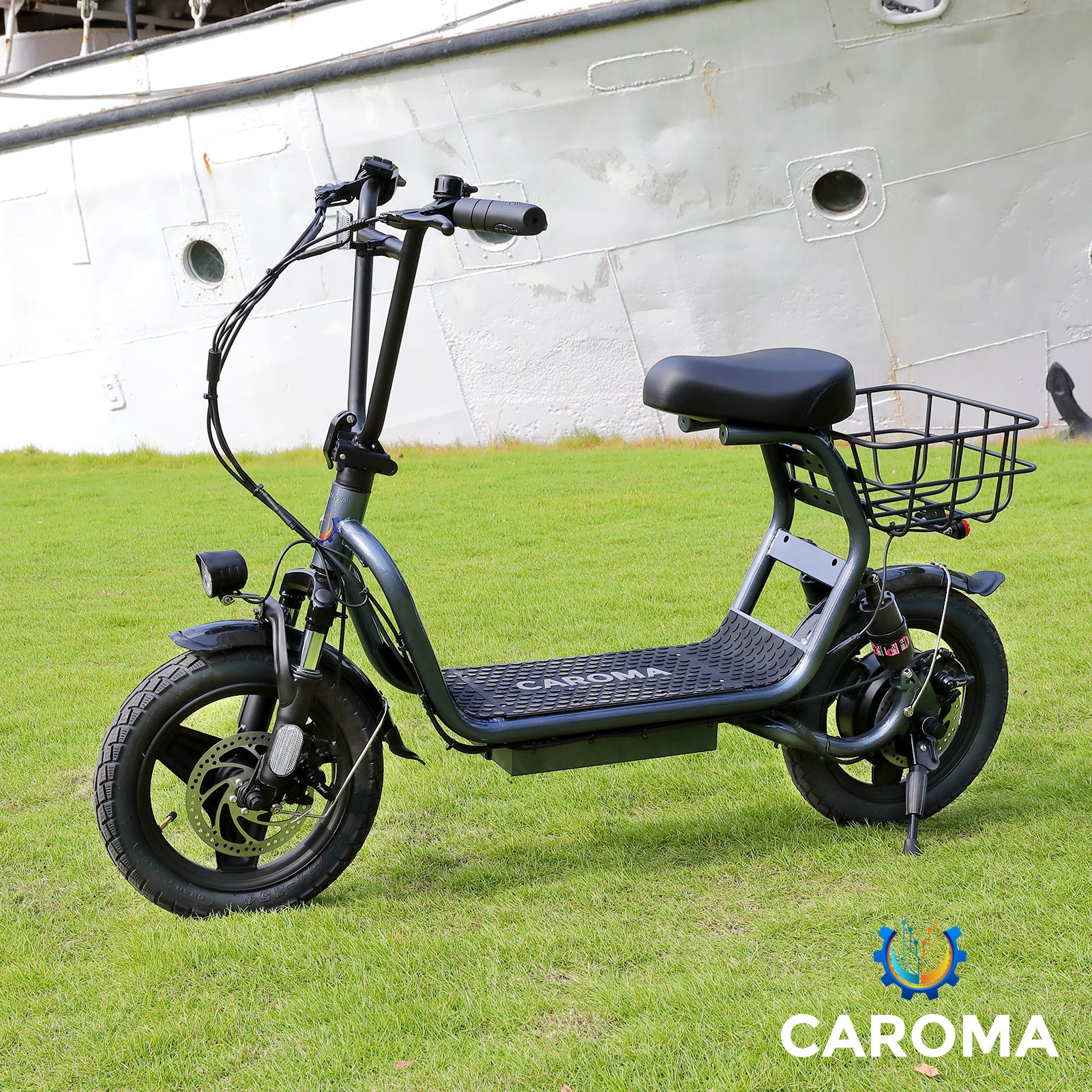 Caroma Peak 819W Electric Scooter for Adults, 14" Tire, 375Wh Battery, 25 Miles Range, 20MPH Top Speed, Foldable Electric Scooter with Seat & Basket for Commuting, Shock Absorbing Ebike for Adults