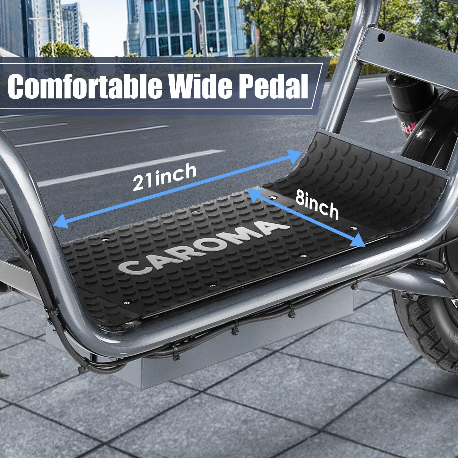 【20"X3" Fat Tire】Puncture-proof 20"*3" oversized fat tires can provide superior grip, stability and comfort on various terrains. Whether on sand, mountain roads, snowy roads or various terrains, Caroma electric scooters can bring you a comfortable riding experience.