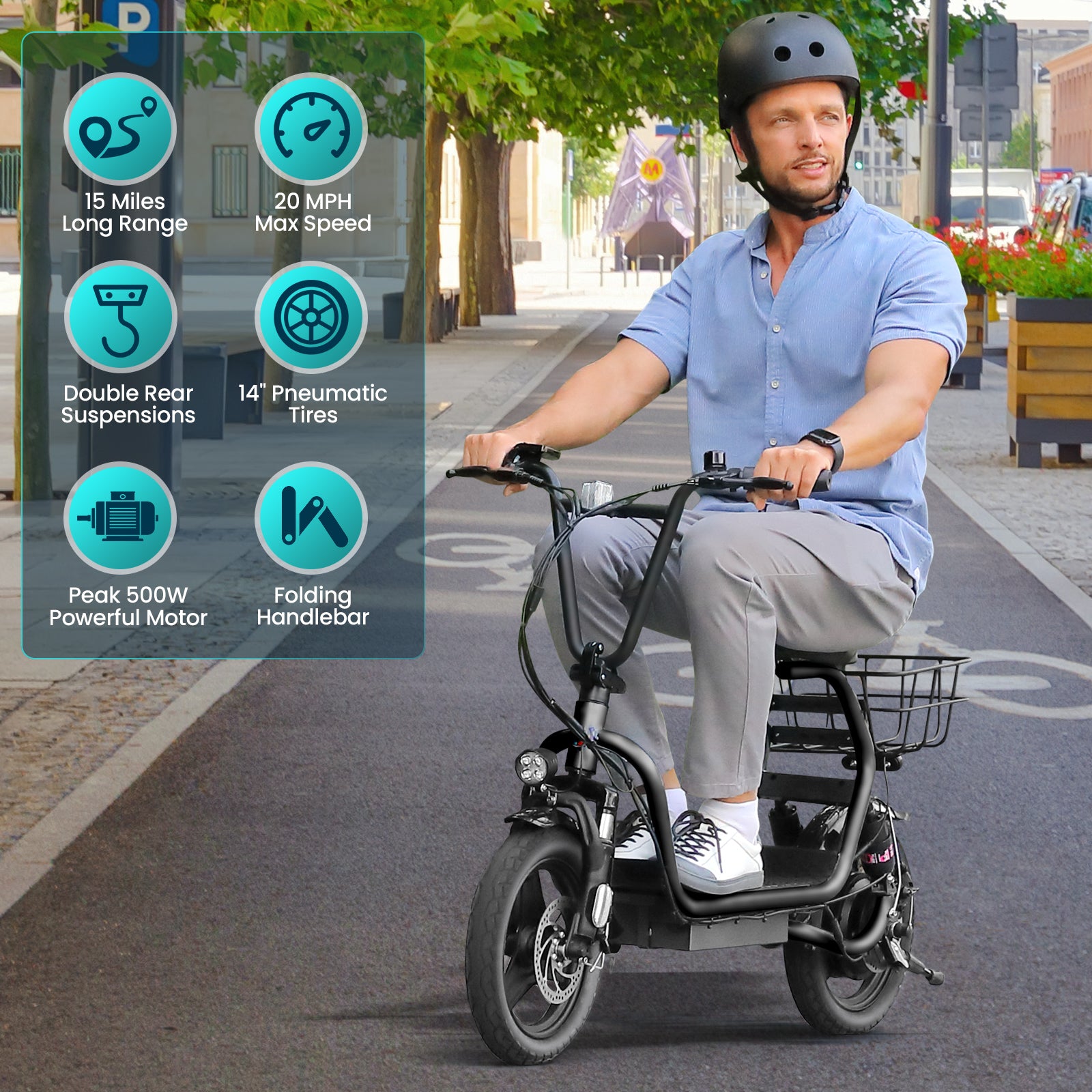 🛴【Upgraded Brushless Hub Motor】The upgraded 500W(Peak 819W) brushless hub motor has stronger climbing ability. In pure electric mode, it can reach speeds of up to 20MPH(32KM/H) and easily conquer slopes of up to 15 degrees. For all your riding needs.