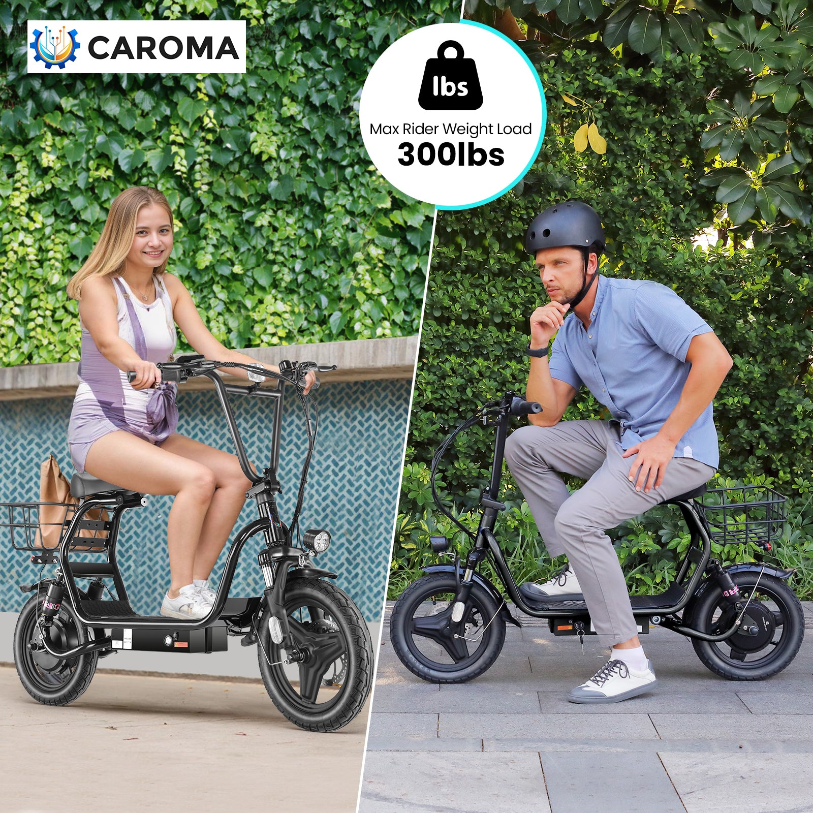 🛴【20""X3"" Fat Tire】Puncture-proof 20""*3"" oversized fat tires can provide superior grip, stability and comfort on various terrains. Whether on sand, mountain roads, snowy roads or various terrains, Caroma electric scooters can bring you a comfortable riding experience.