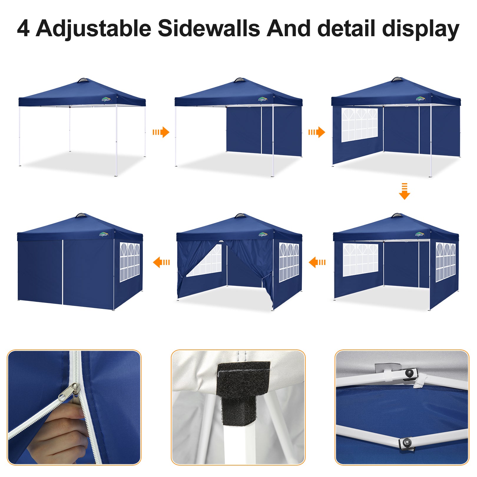 COBIZI 10' x 10' Adjustable Height Pop-up Canopy Tent Fully Waterproof Instant Outdoor Canopy Folding Shelter with 4 Removable Sidewalls, Air Vent on The Top, 4 Sandbags, Carrying Bag, Dark Blue