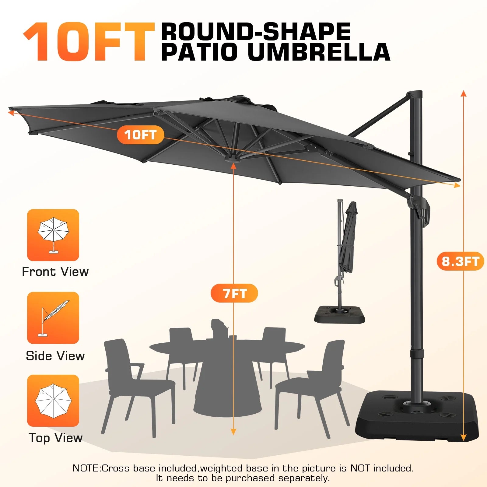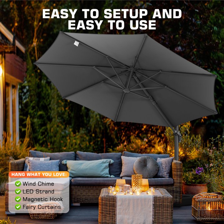 COBIZI 10FT PATIO UMBRELLA-360 Degree Rotation Cantilever Umbrella