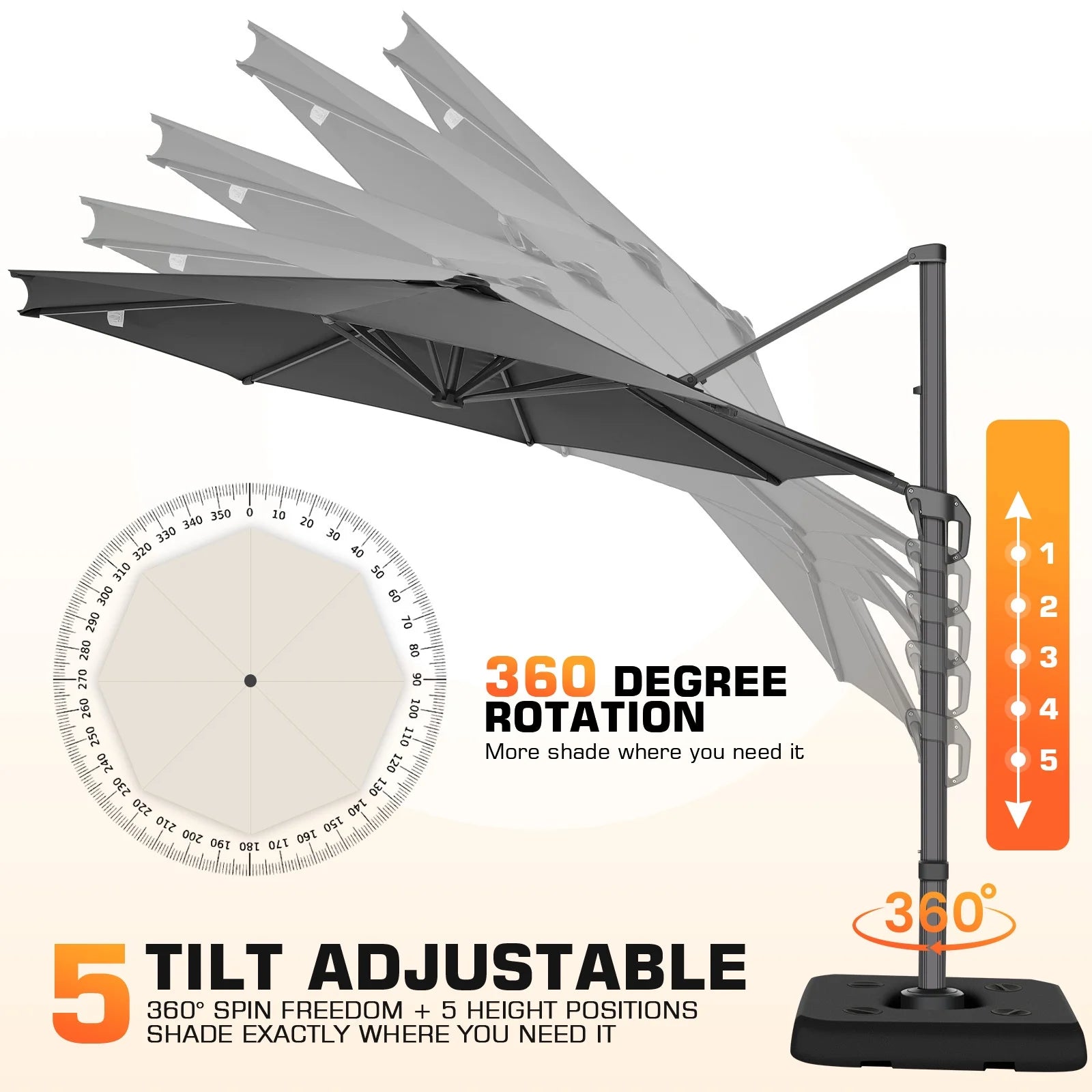 • Adjustable Shade & 5 Height Positions: Experience ultimate versatility with our position lock system, offering a 90° tilt, 360° rotation, and 5 adjustable height settings to perfectly meet all your needs.
