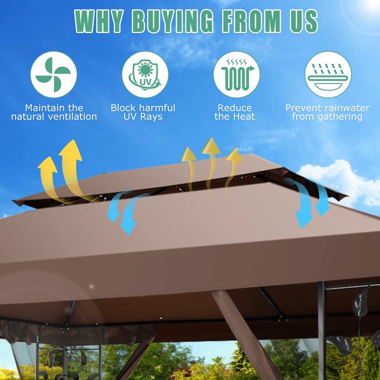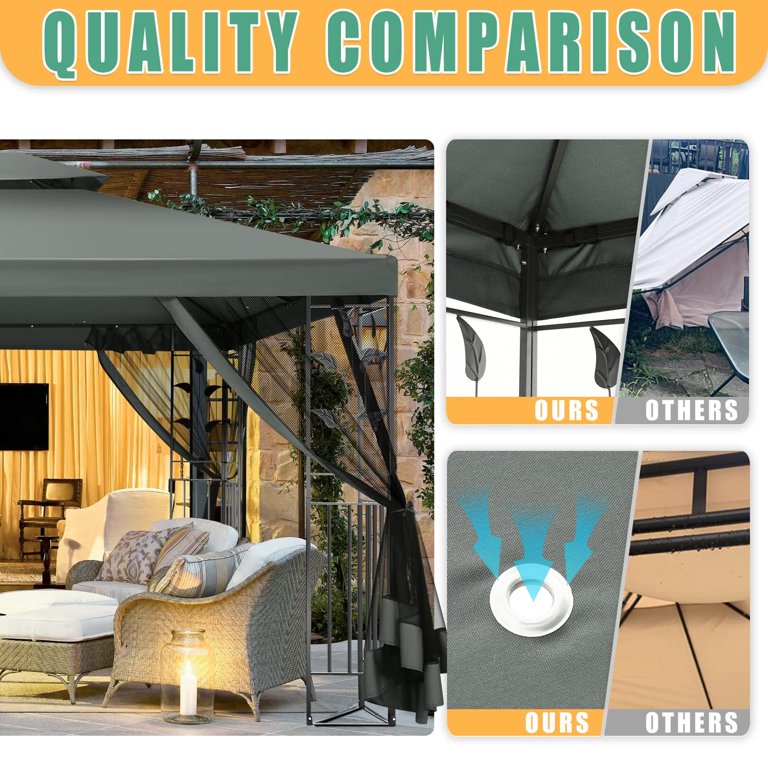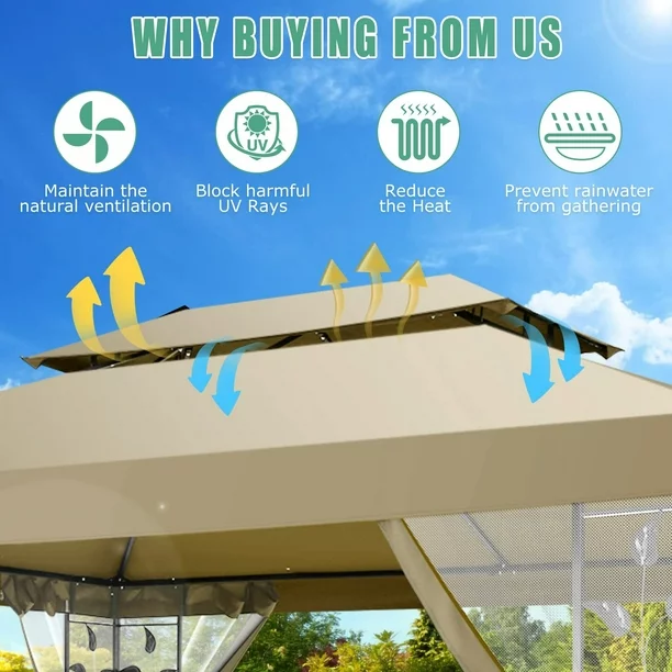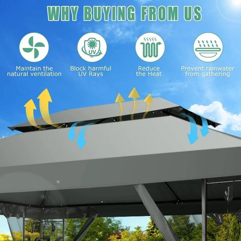 - 【Double tiered top】The design of double tiered top make better air circulation and air quality inside the gazebo.