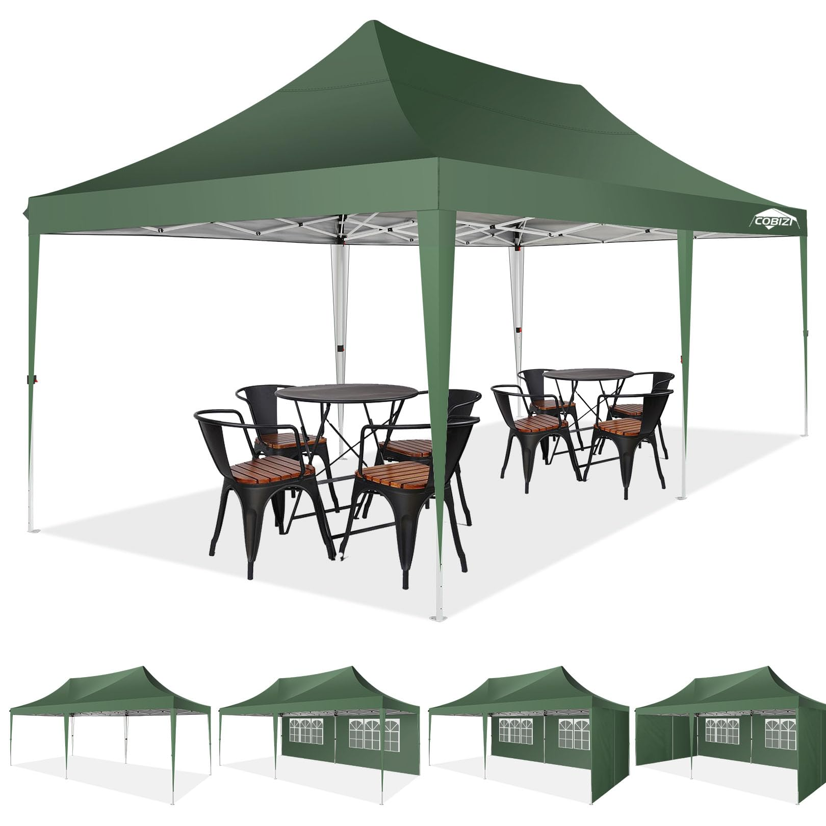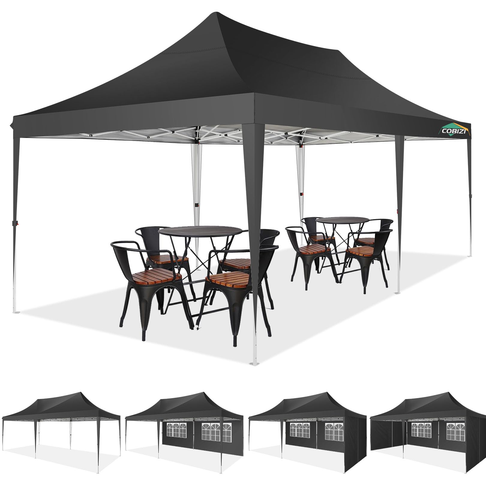 COBIZI 10x20 Pop up Canopy Gazebo, Outdoor Canopy Tent with 6 Removable Sidewalls,for Backyard, Parties, Wedding, Black