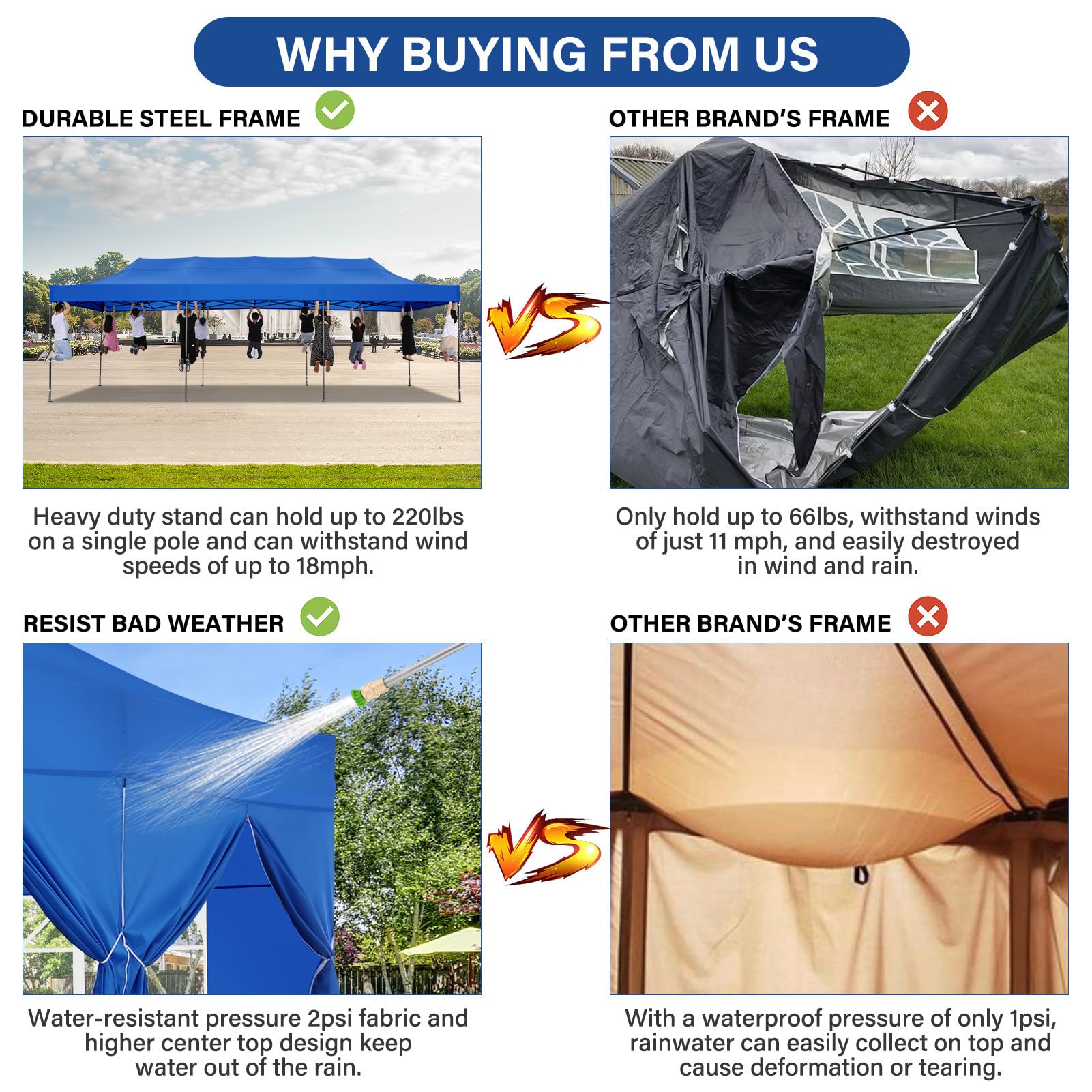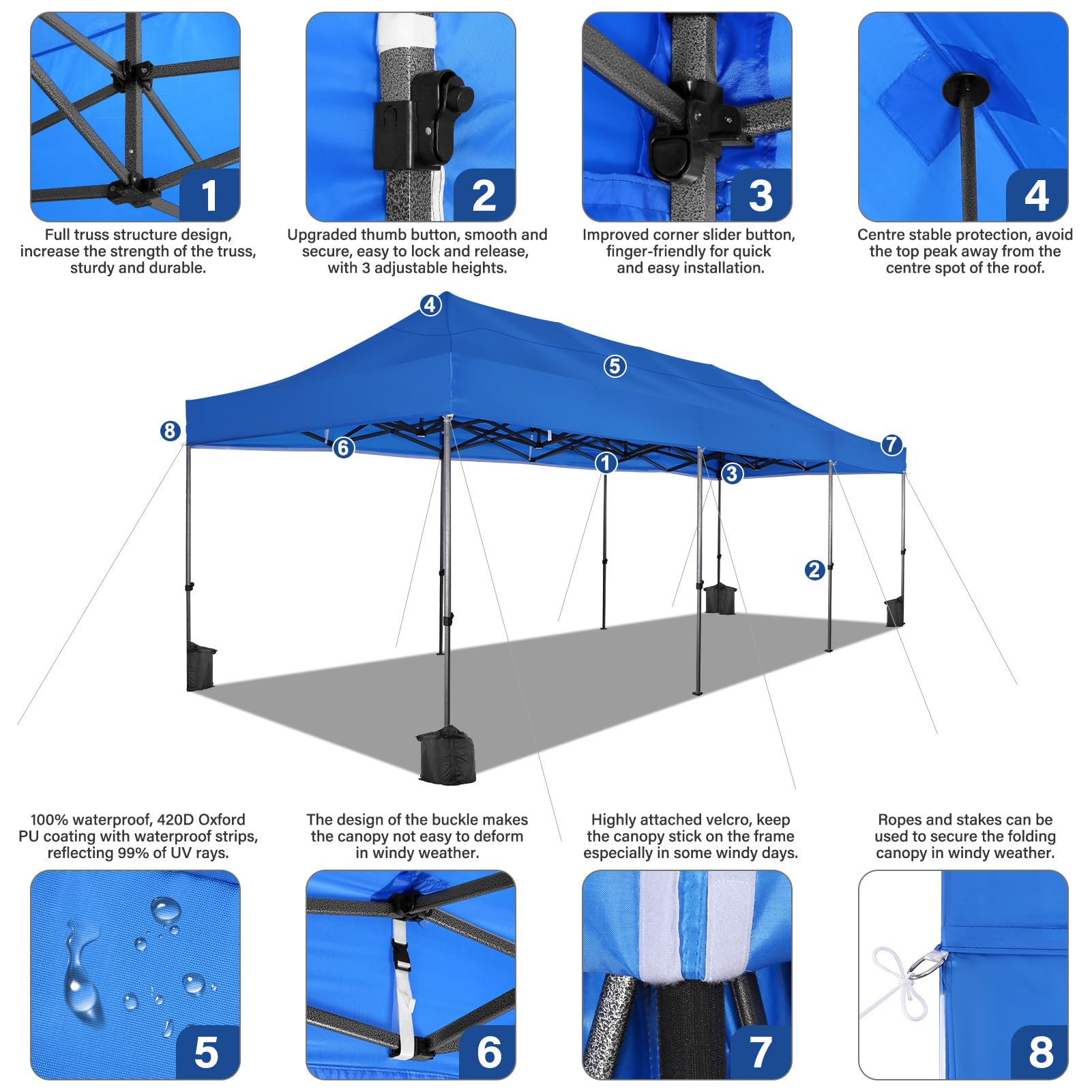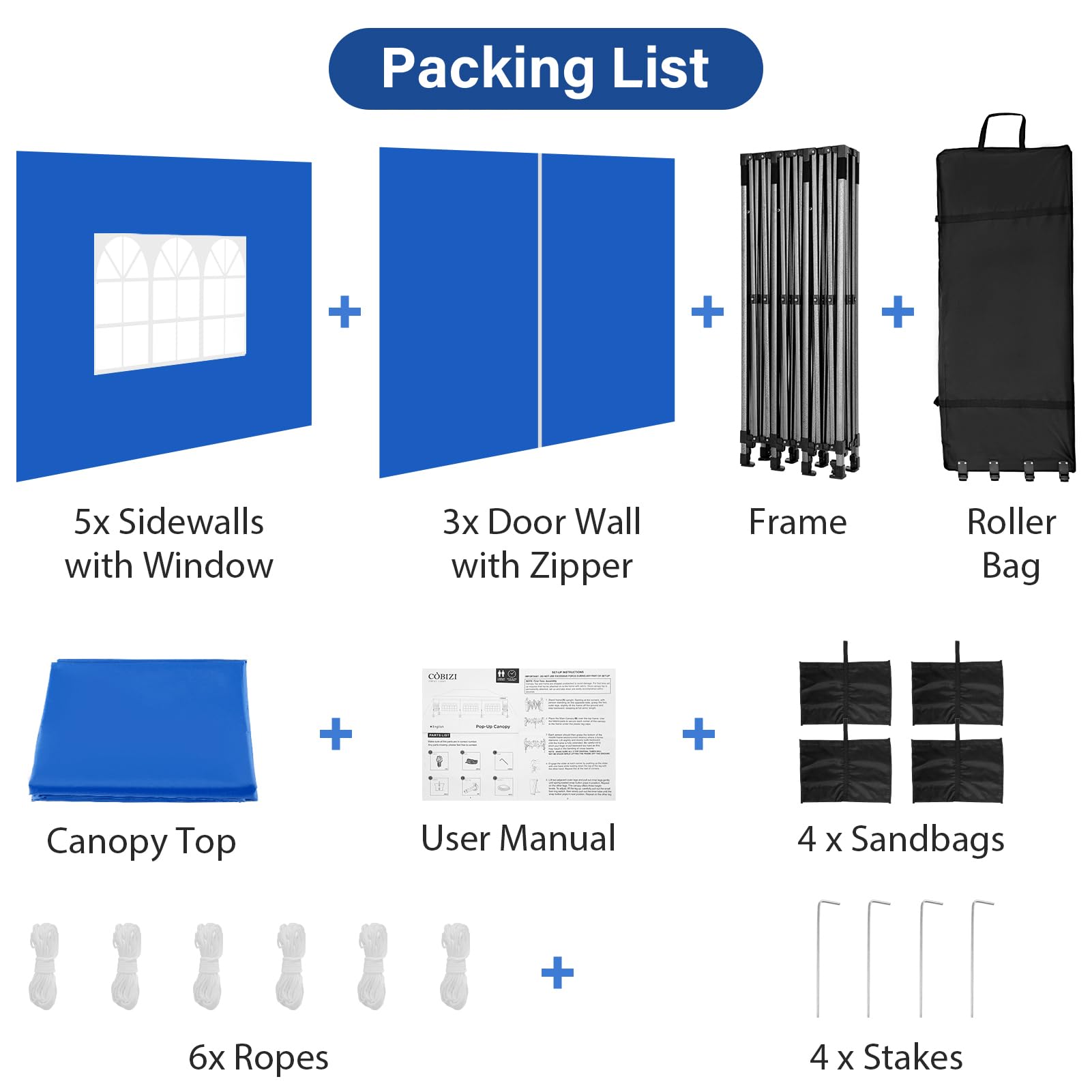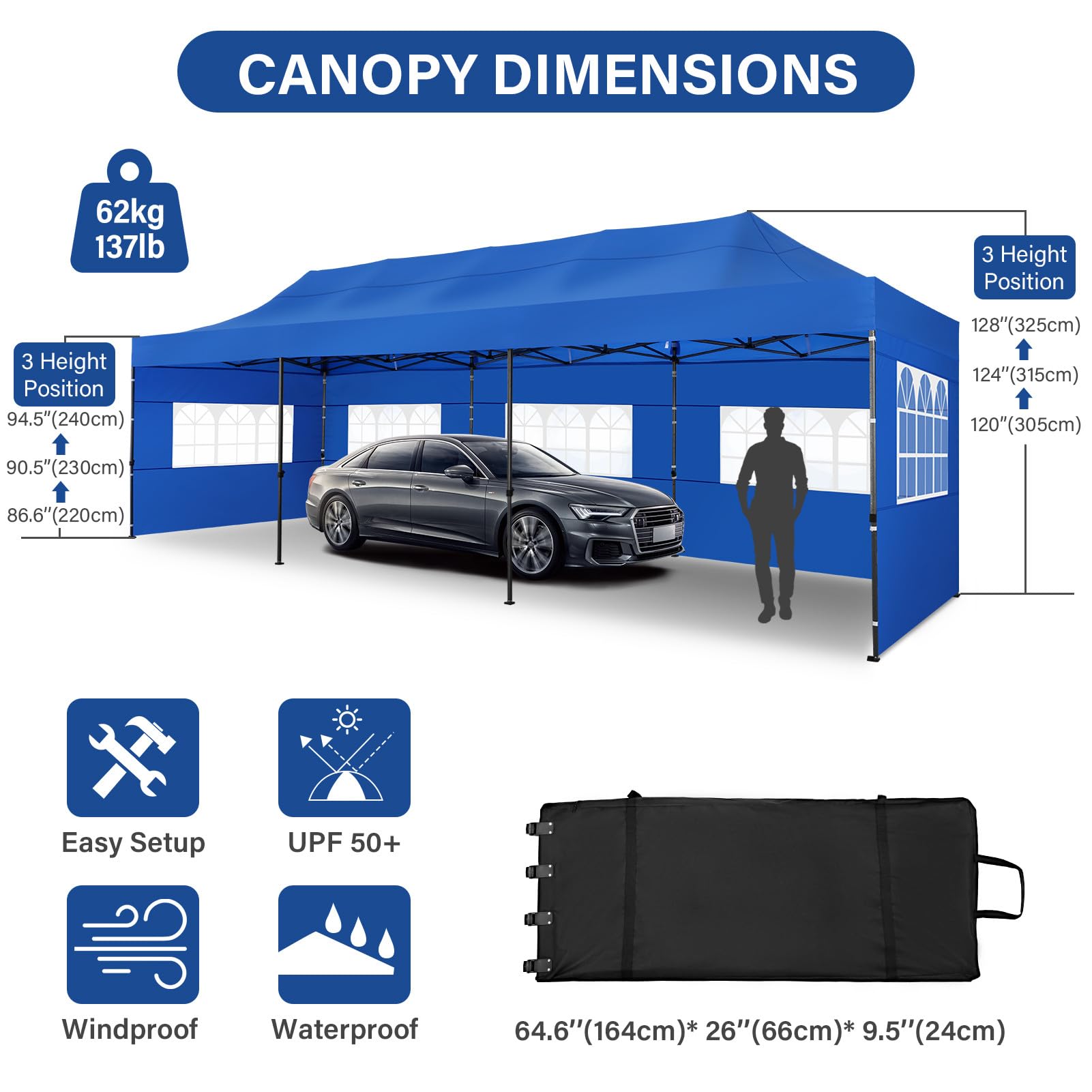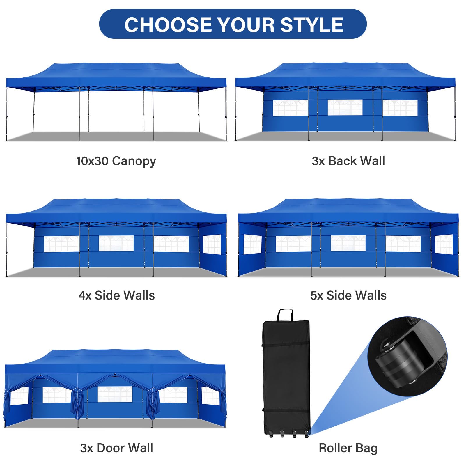 COBIZI 10'x30' Pop up Canopy, Party Tent Outdoor Event Instant Gazebo, Waterproof Commercial Heavy Duty Canopy for Events with 8 Sidewalls