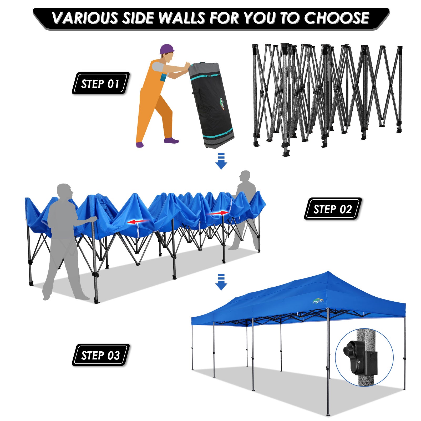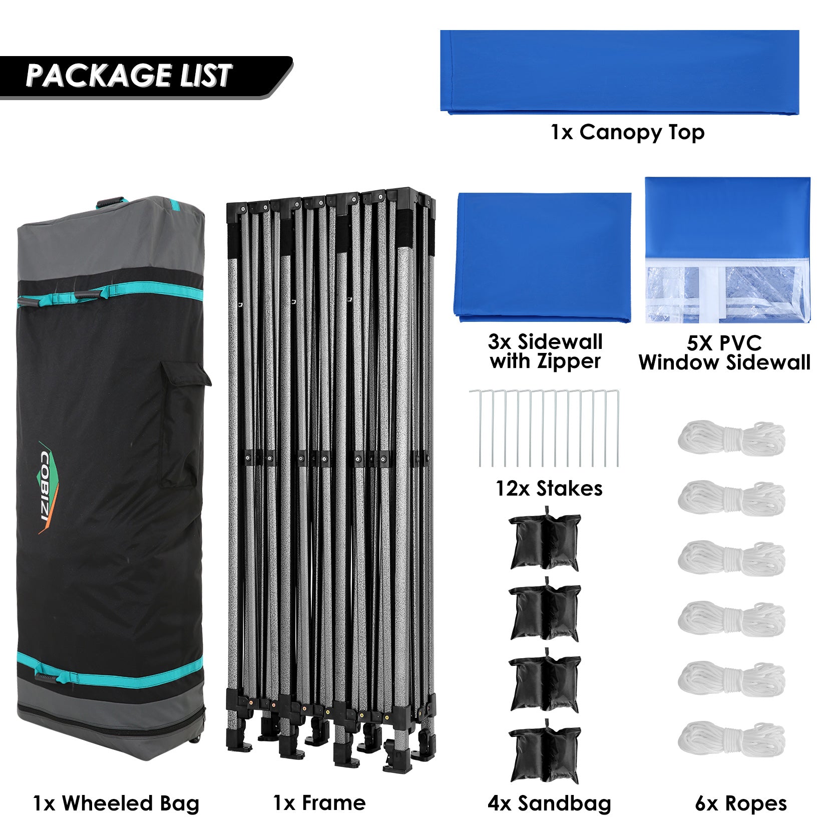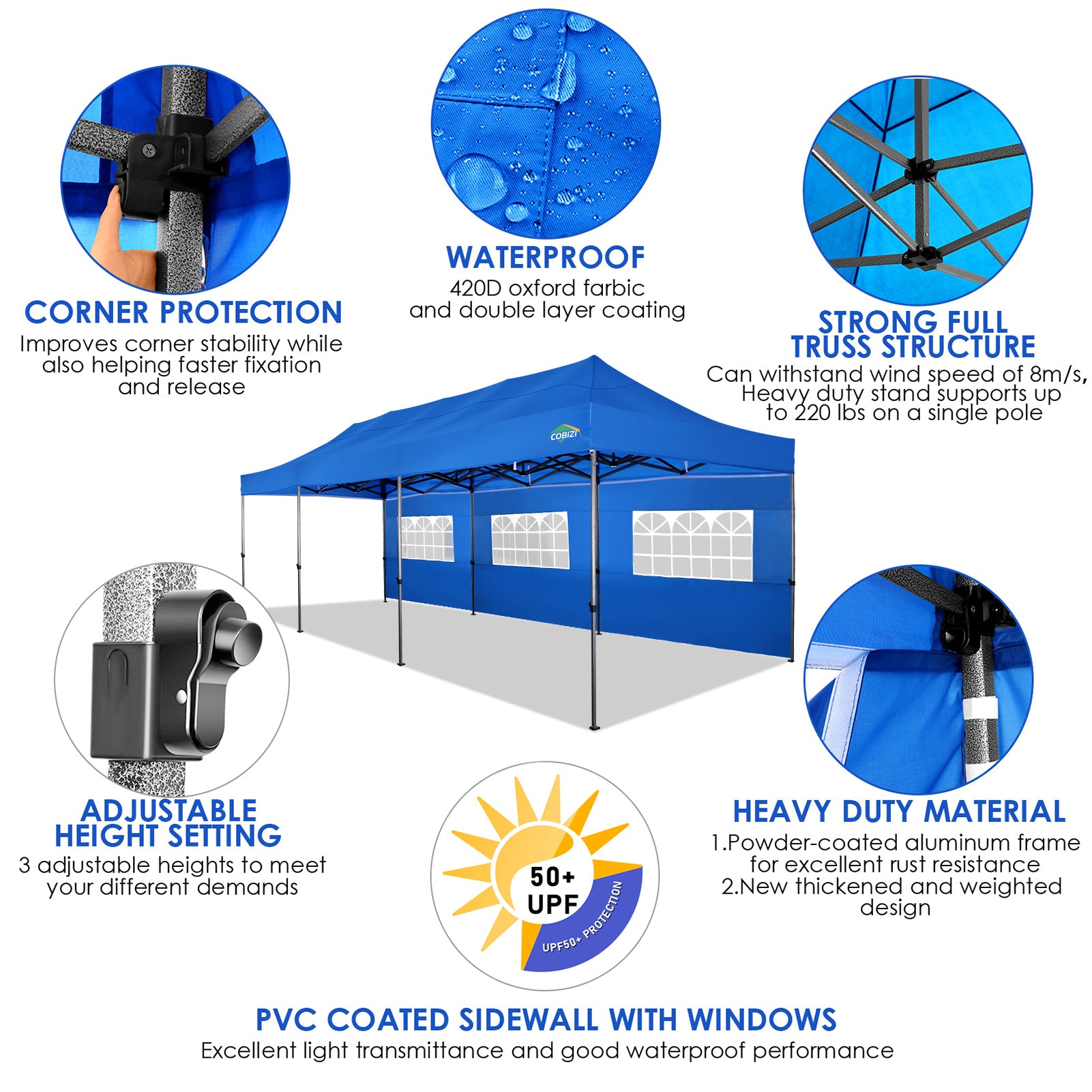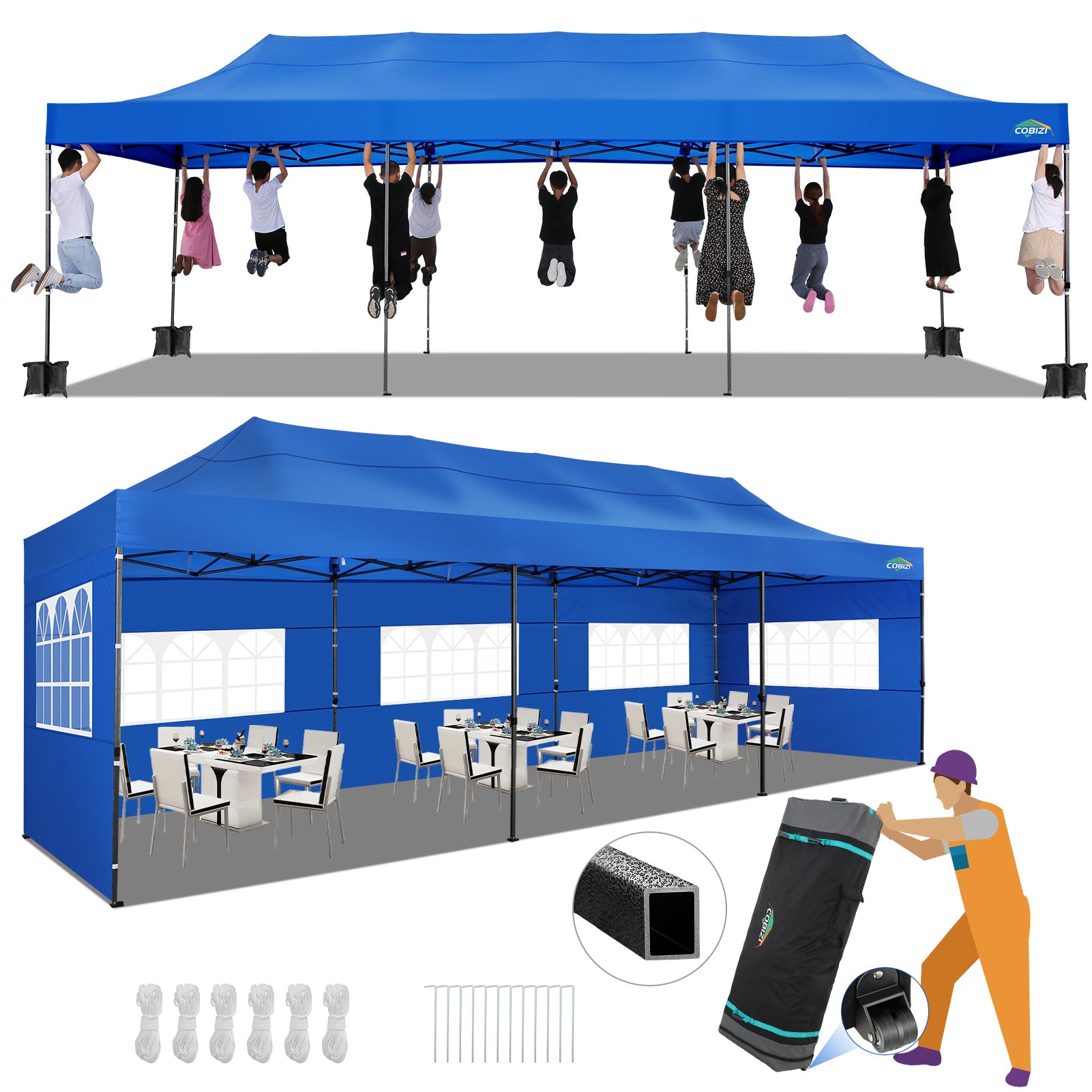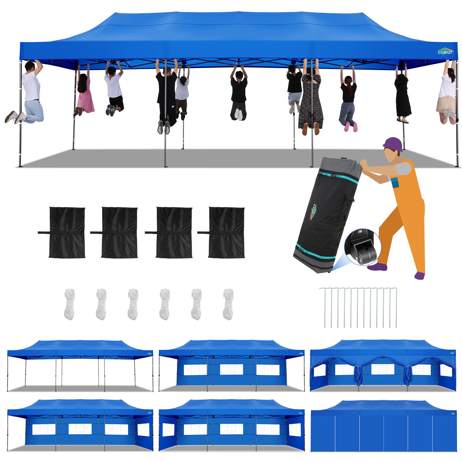 COBIZI 10'x30' Pop up Canopy, Party Tent Outdoor Event Instant Gazebo, Waterproof Commercial Heavy Duty Canopy for Events with 8 Sidewalls and 4 Sandbags, Wheeled Carry Bag, Blue