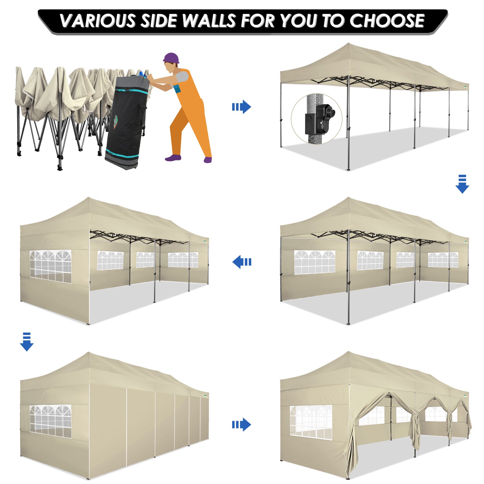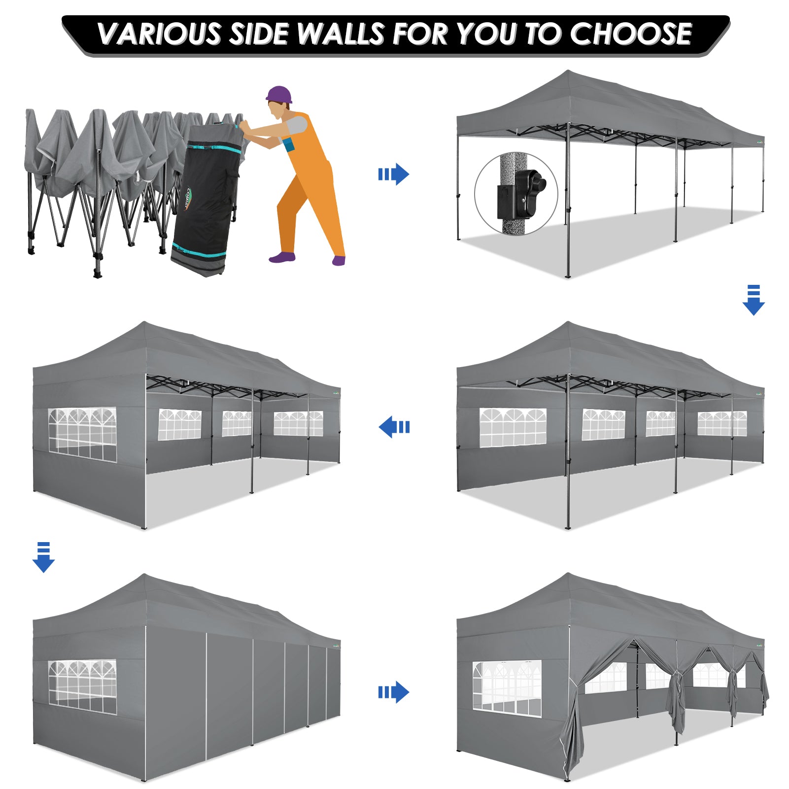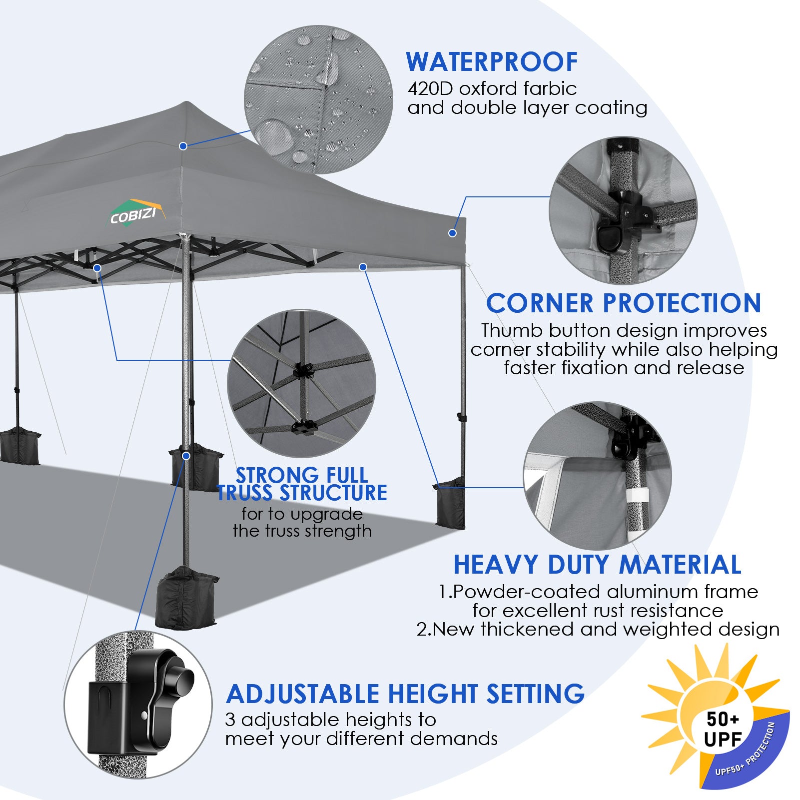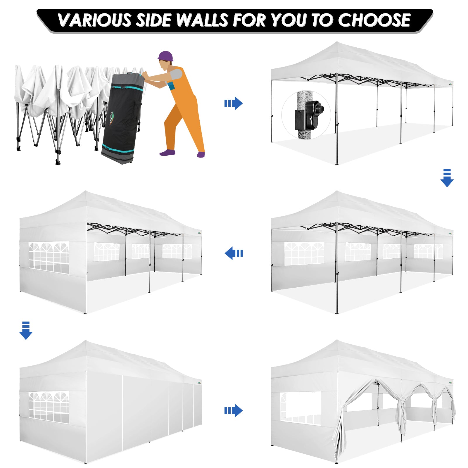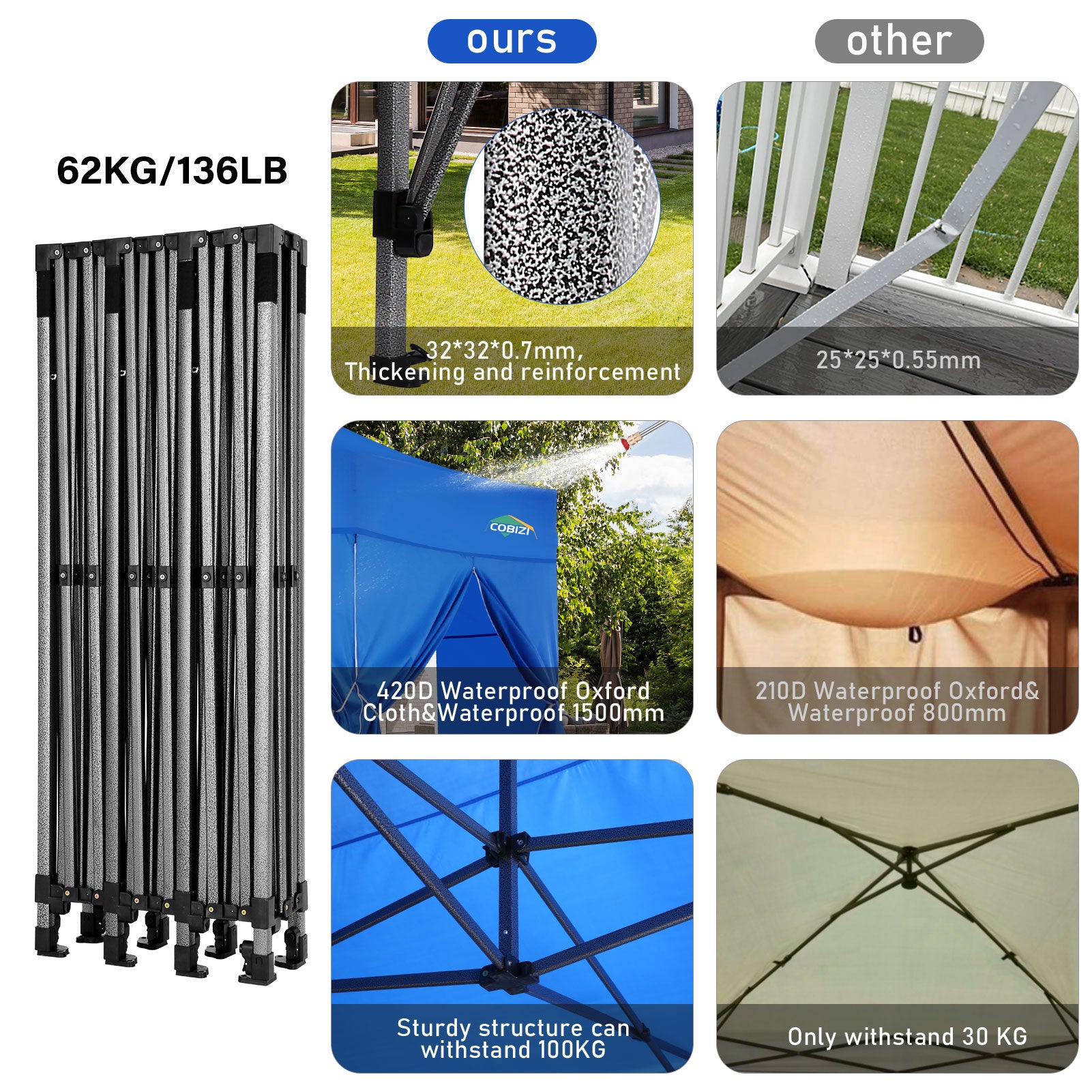 COBIZI 10'x30' Pop up Canopy, Party Tent Outdoor Event Instant Gazebo, Waterproof Commercial Heavy Duty Canopy for Events with 8 Sidewalls and 4 Sandbags, Wheeled Carry Bag, Blue