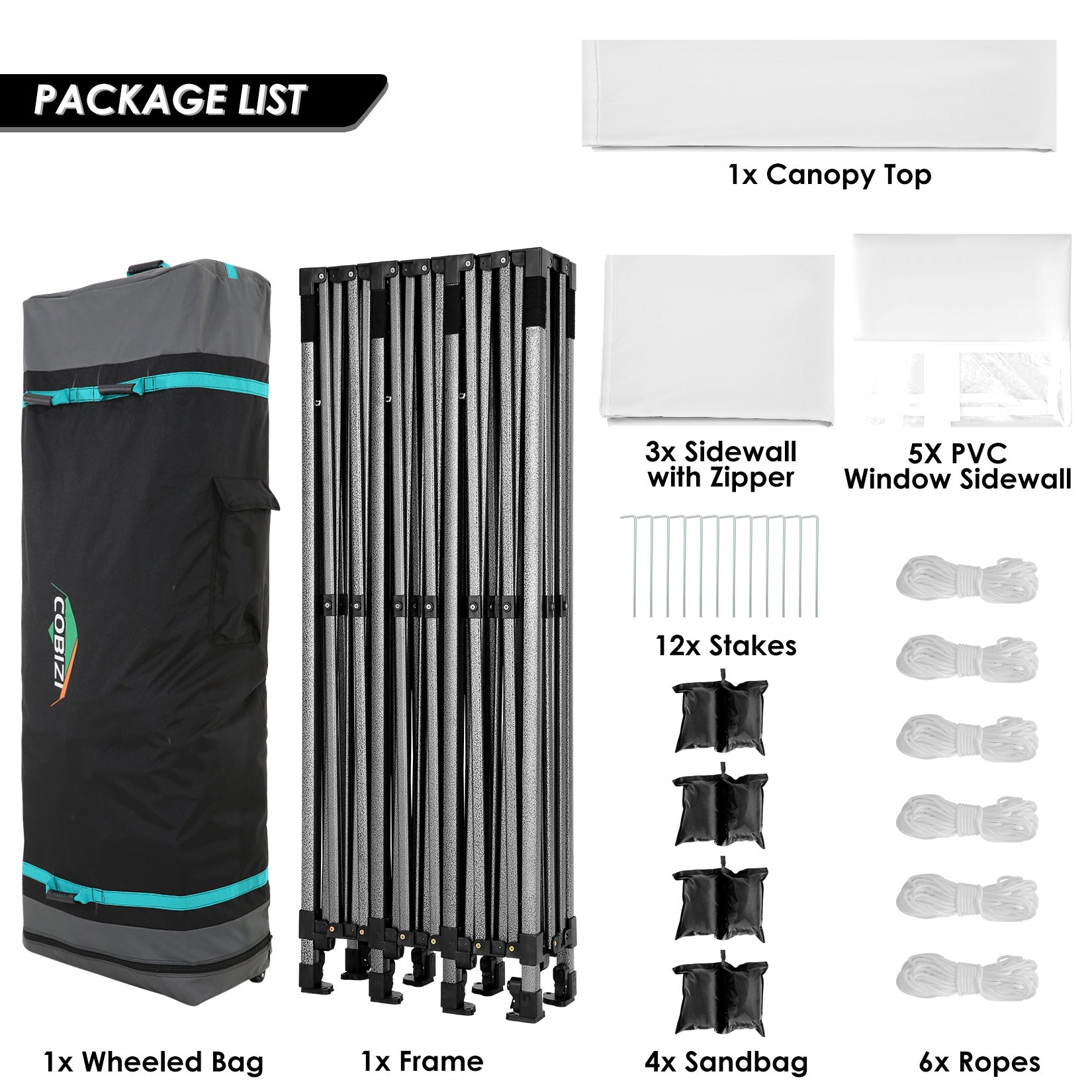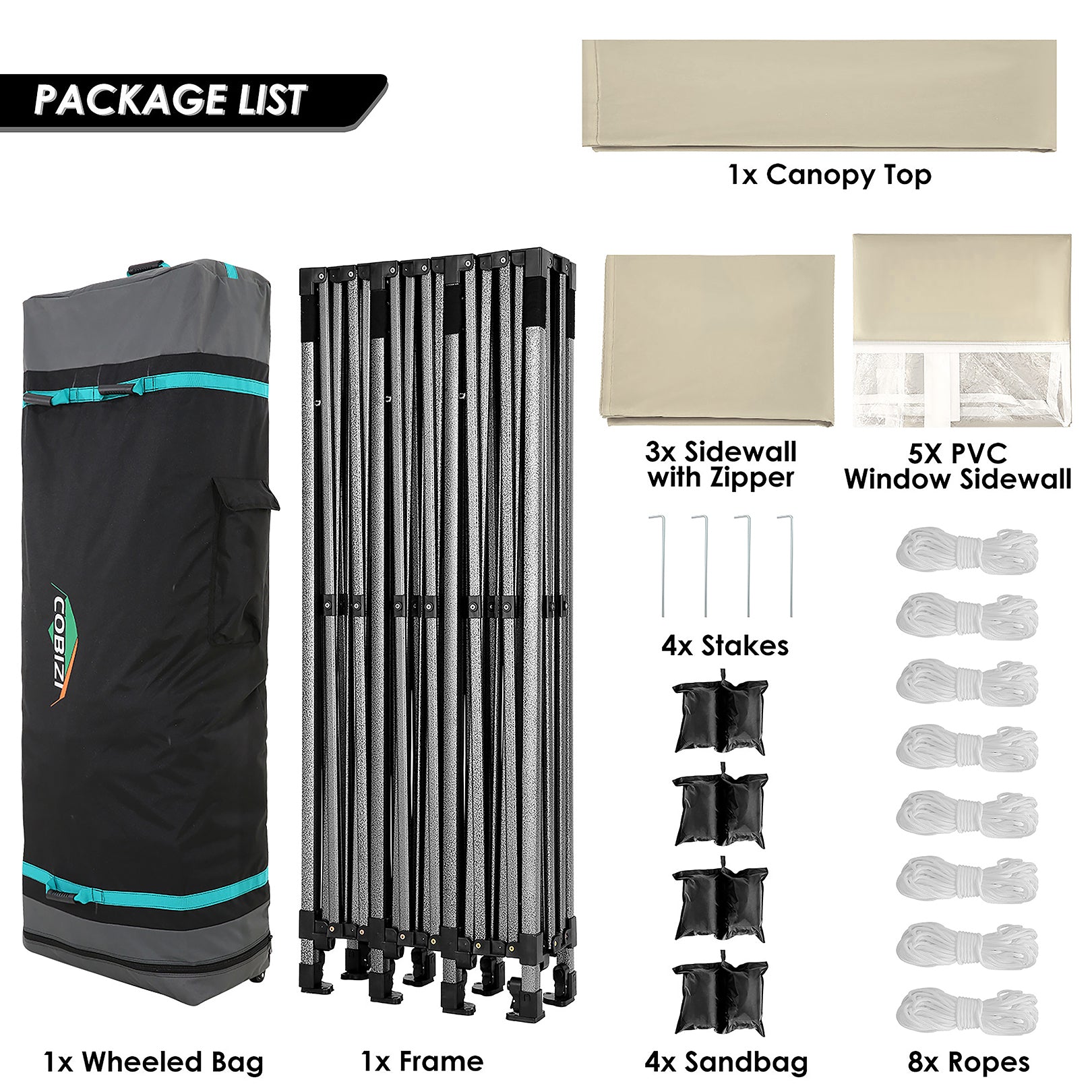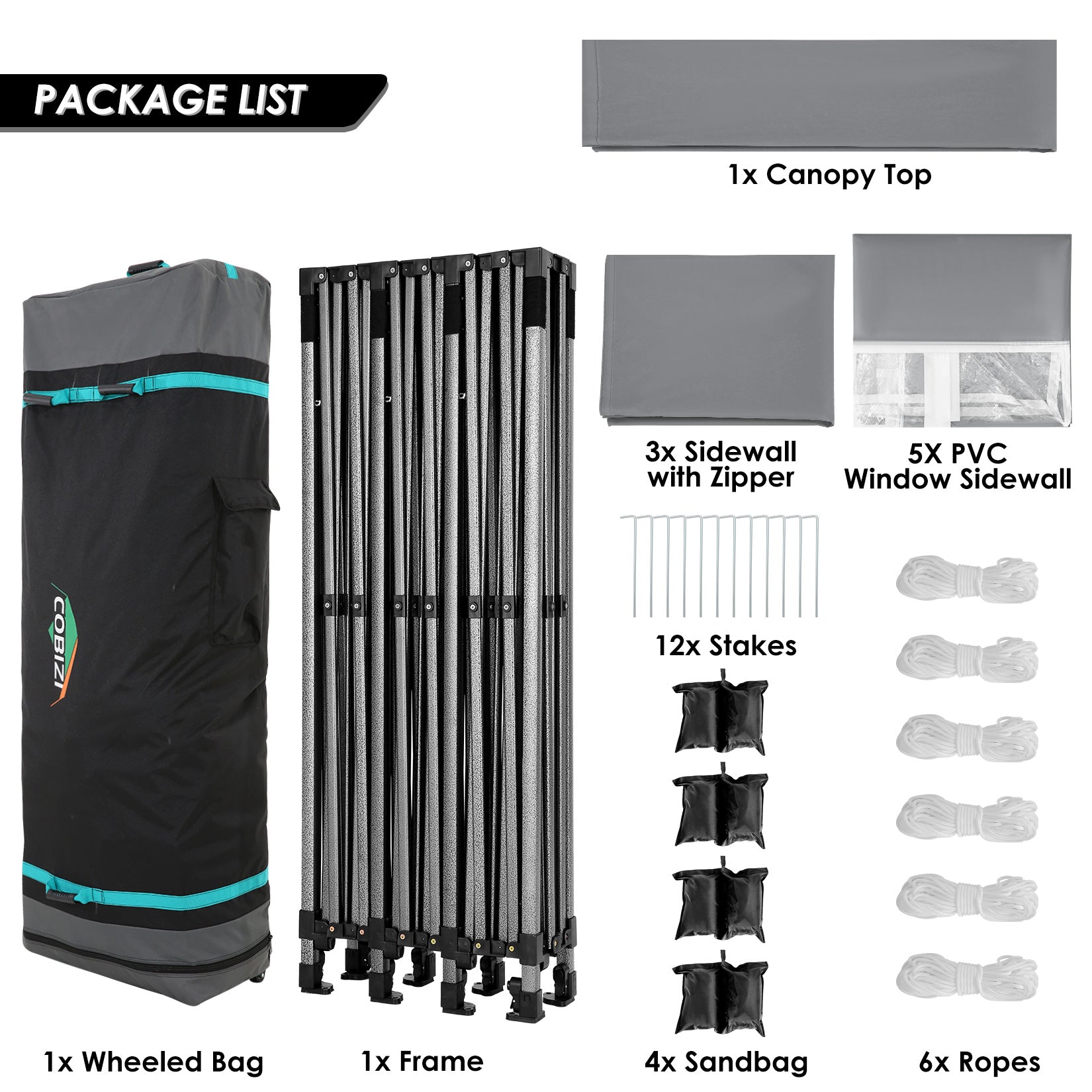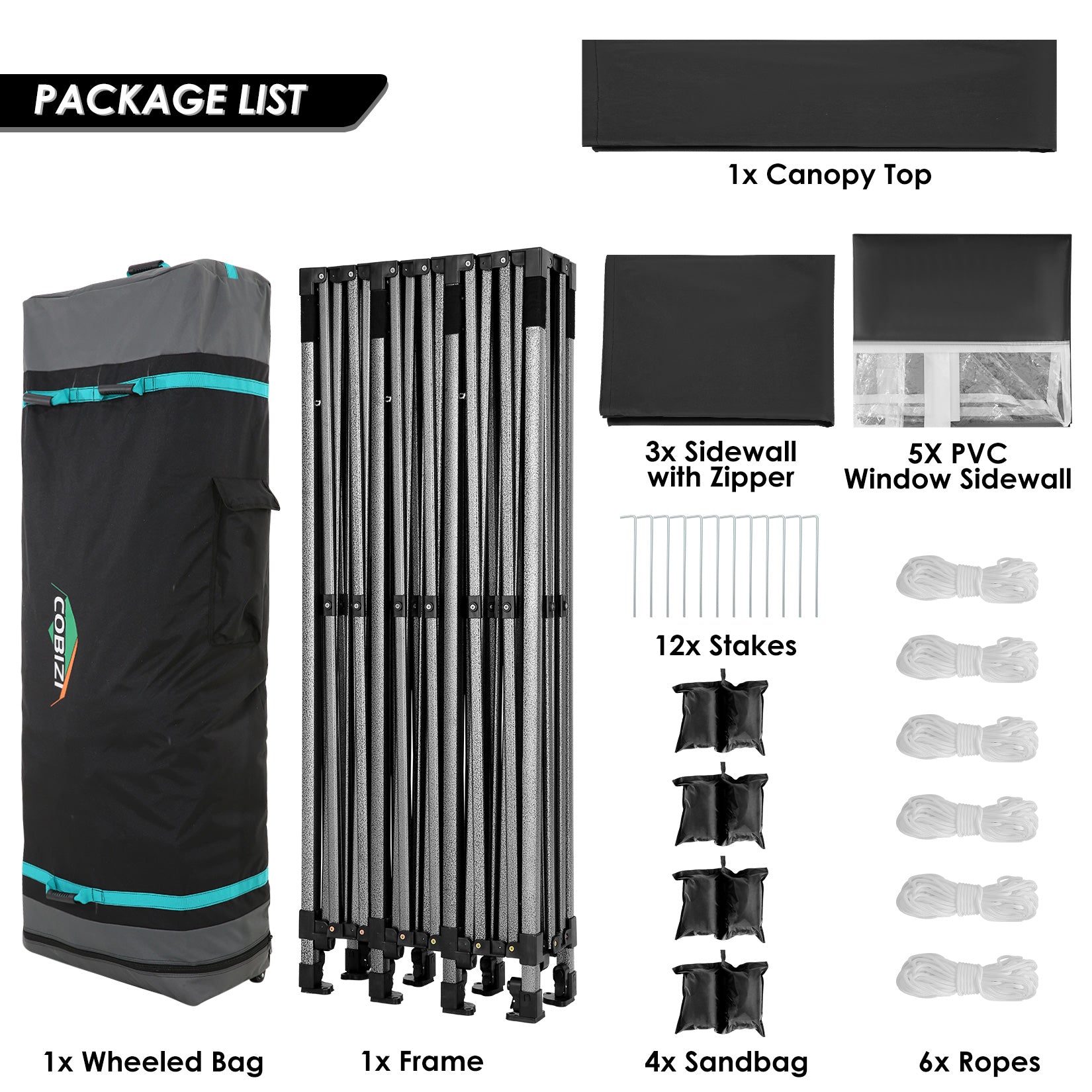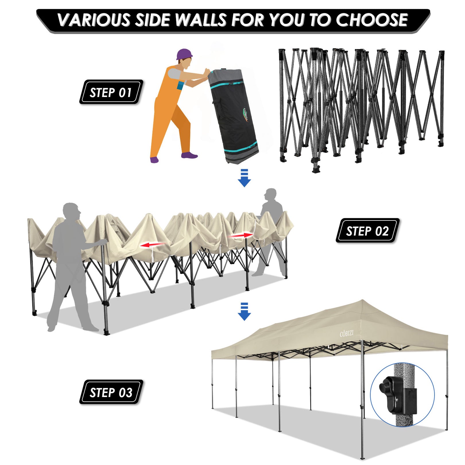 COBIZI 10'x30' Pop up Canopy, Party Tent Outdoor Event Instant Gazebo, Waterproof Commercial Heavy Duty Canopy for Events with 8 Sidewalls and 4 Sandbags, Wheeled Carry Bag, Blue