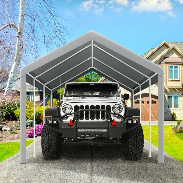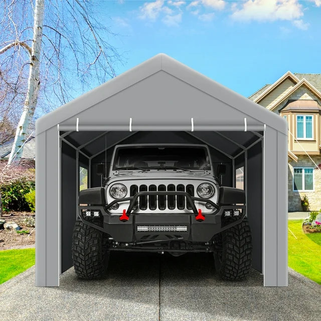 【Multiple Purposes】The car canopy is perfect for commercial shows, weddings, parties and other outdoor events. The portable garage provides a storage shelter for cars, boats, trucks, horse shelters, automobiles, ATVs and garden equipment. The carport can be placed on decks, patios, backyards, and pool areas.