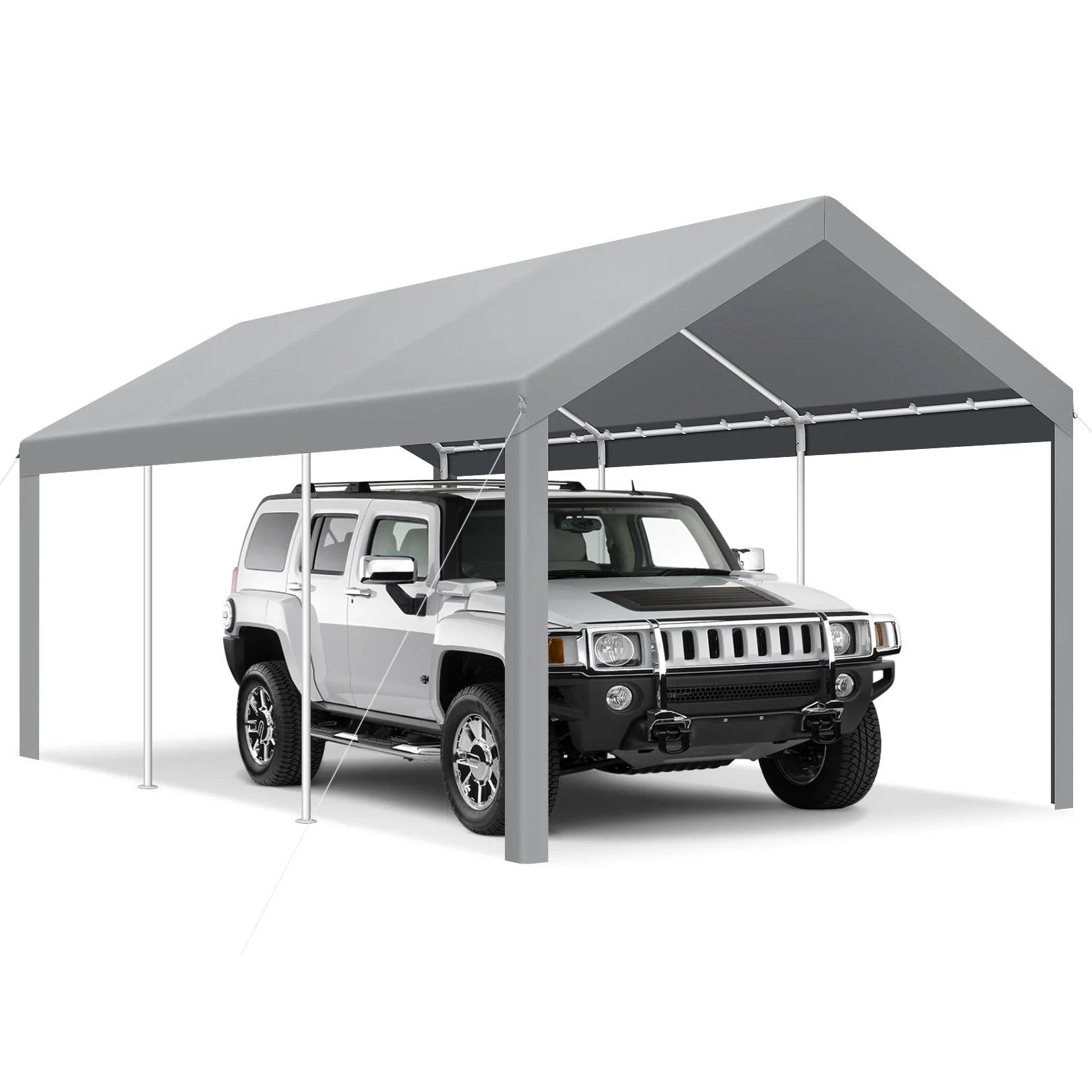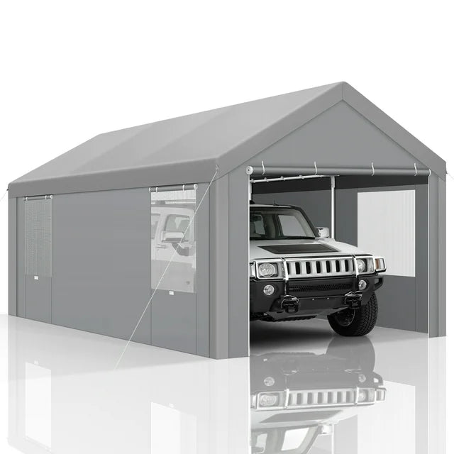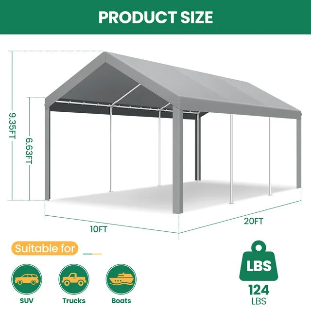 【Waterproof Roof】The 10x20 carport material is made of three layers of rip stop polyethylene fabric that is waterproof, UV resistant, fade resistant, and scratch resistant to protect your car or boat from all weather elements such as sun, wind, rain, dust and hail all year round.