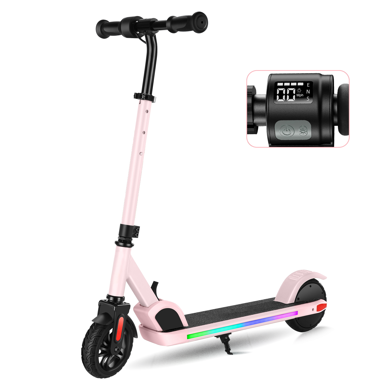 Available in five colors, the light-up deck and pedal LEDs add style and boost visibility, making this electric scooter for kids a fun choice for evening rides and safer neighborhood cruising.