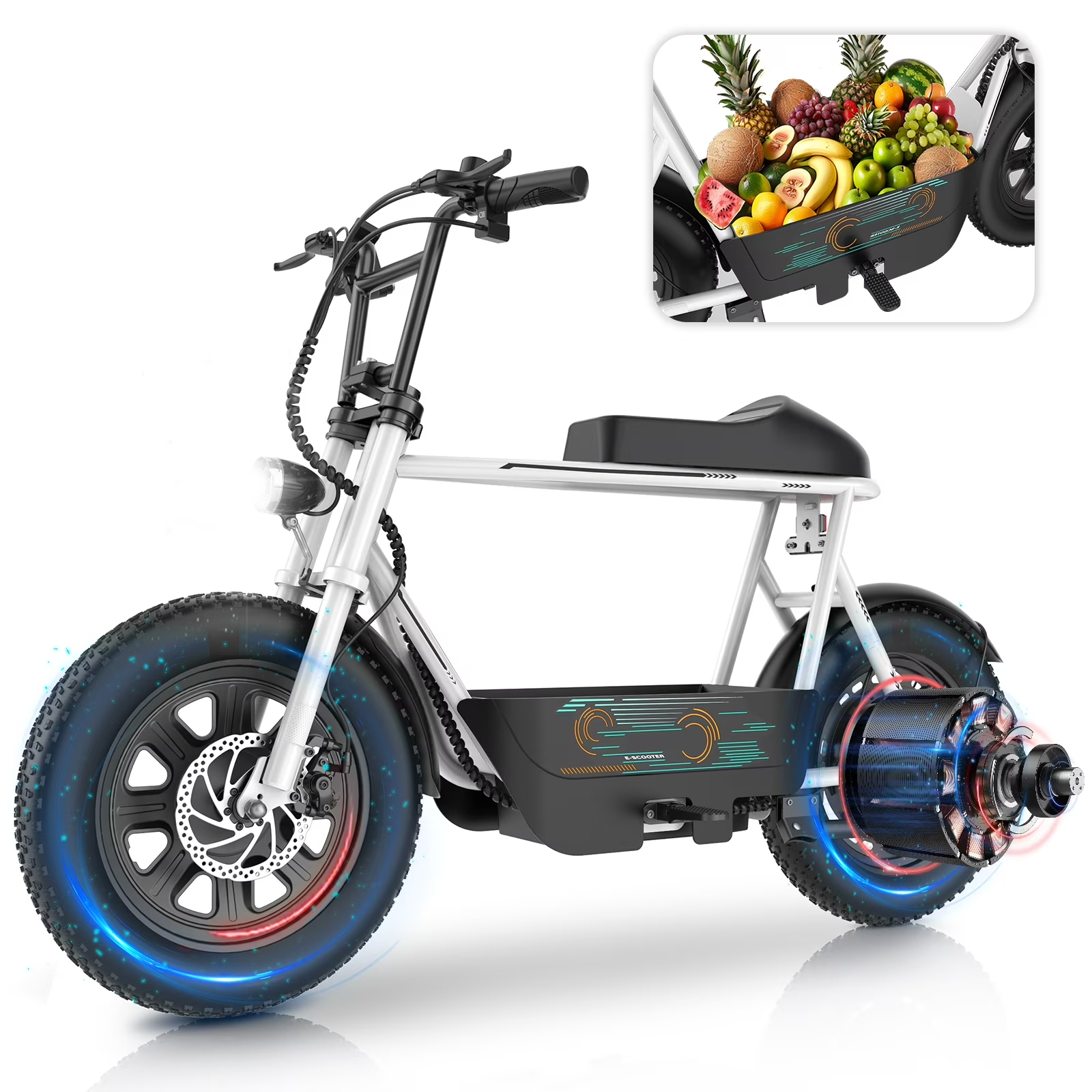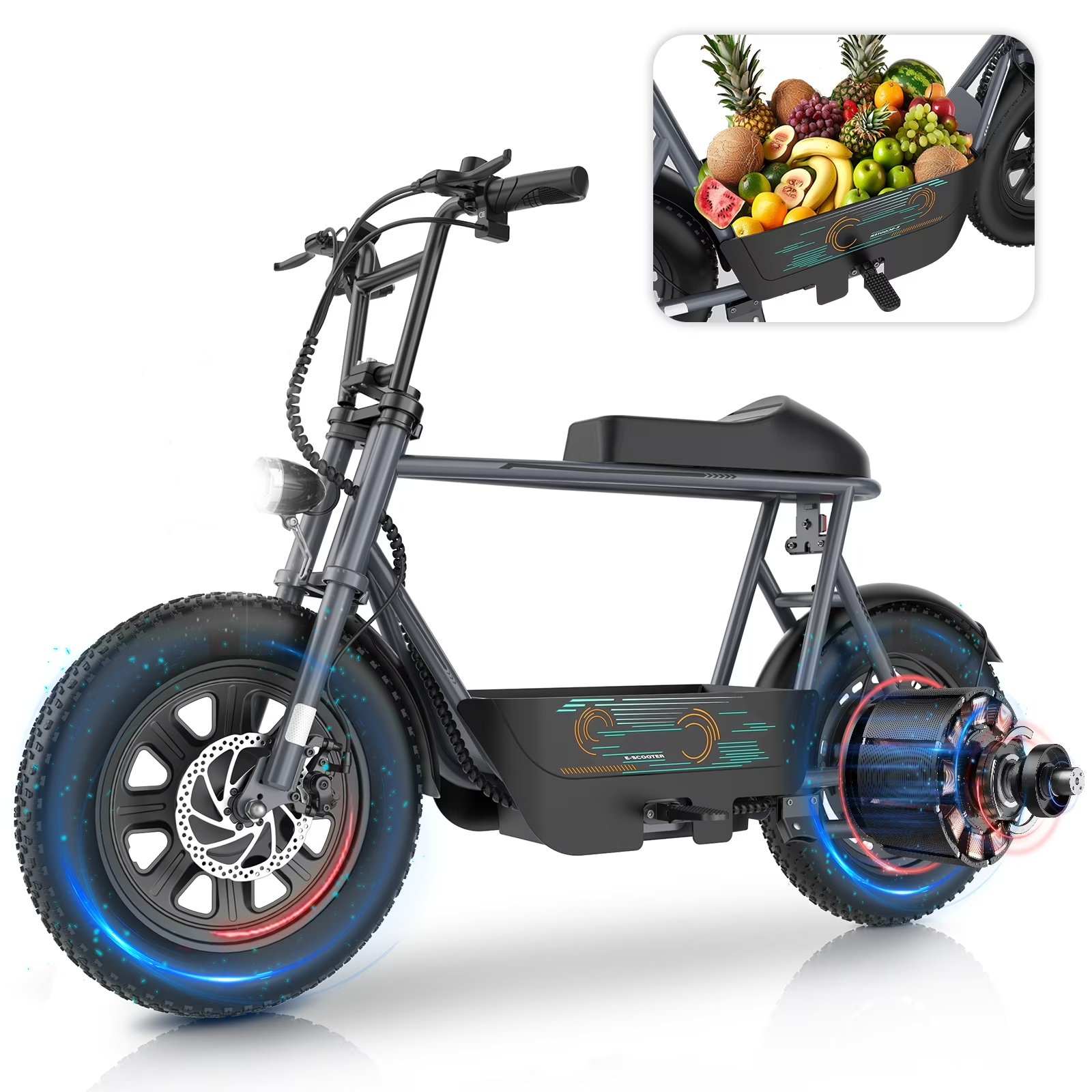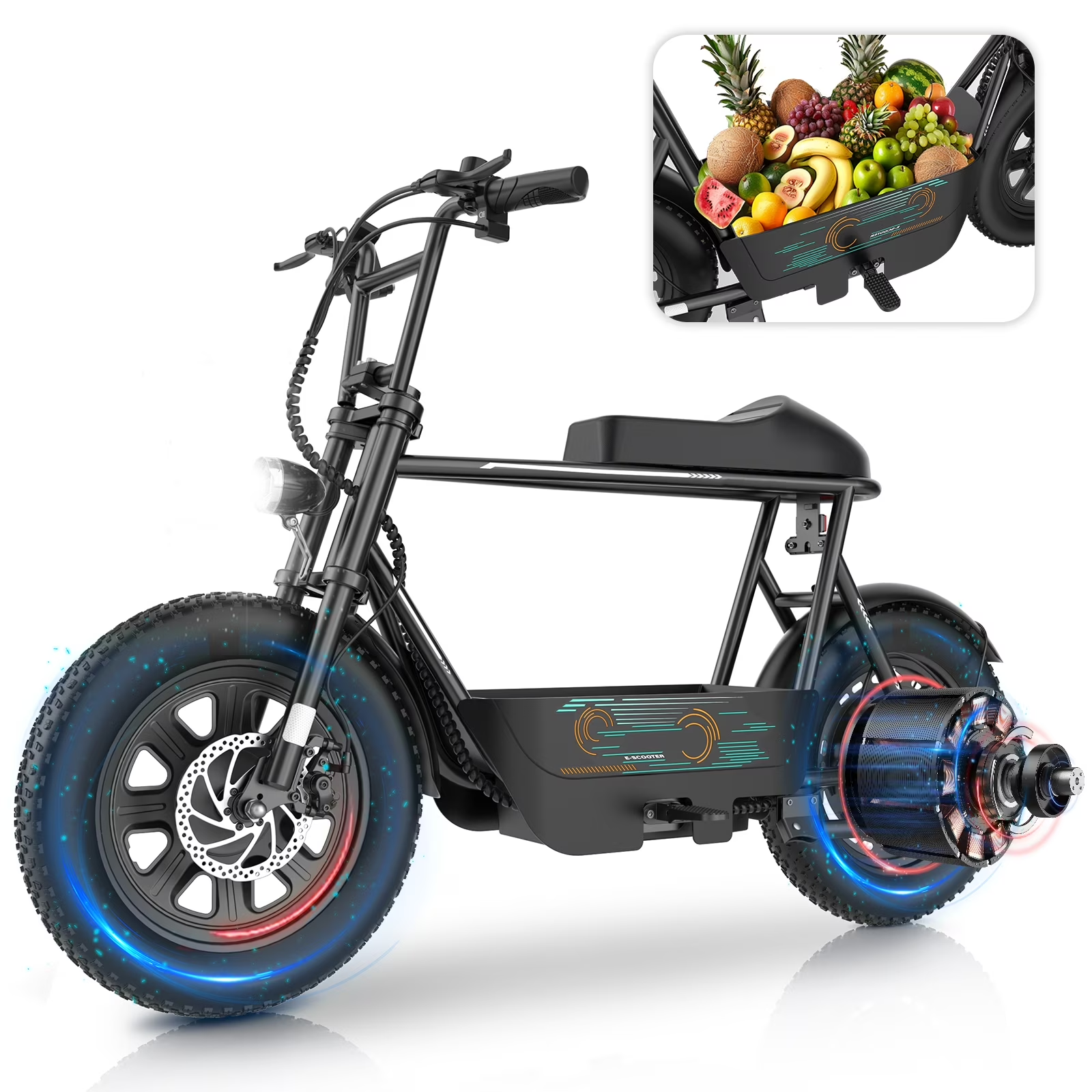 The Hoteel Peak 560W Electric Scooter combines power and style with its 560W motor and motorcycle-inspired design. It features 16" all-terrain fat tires for a smooth.