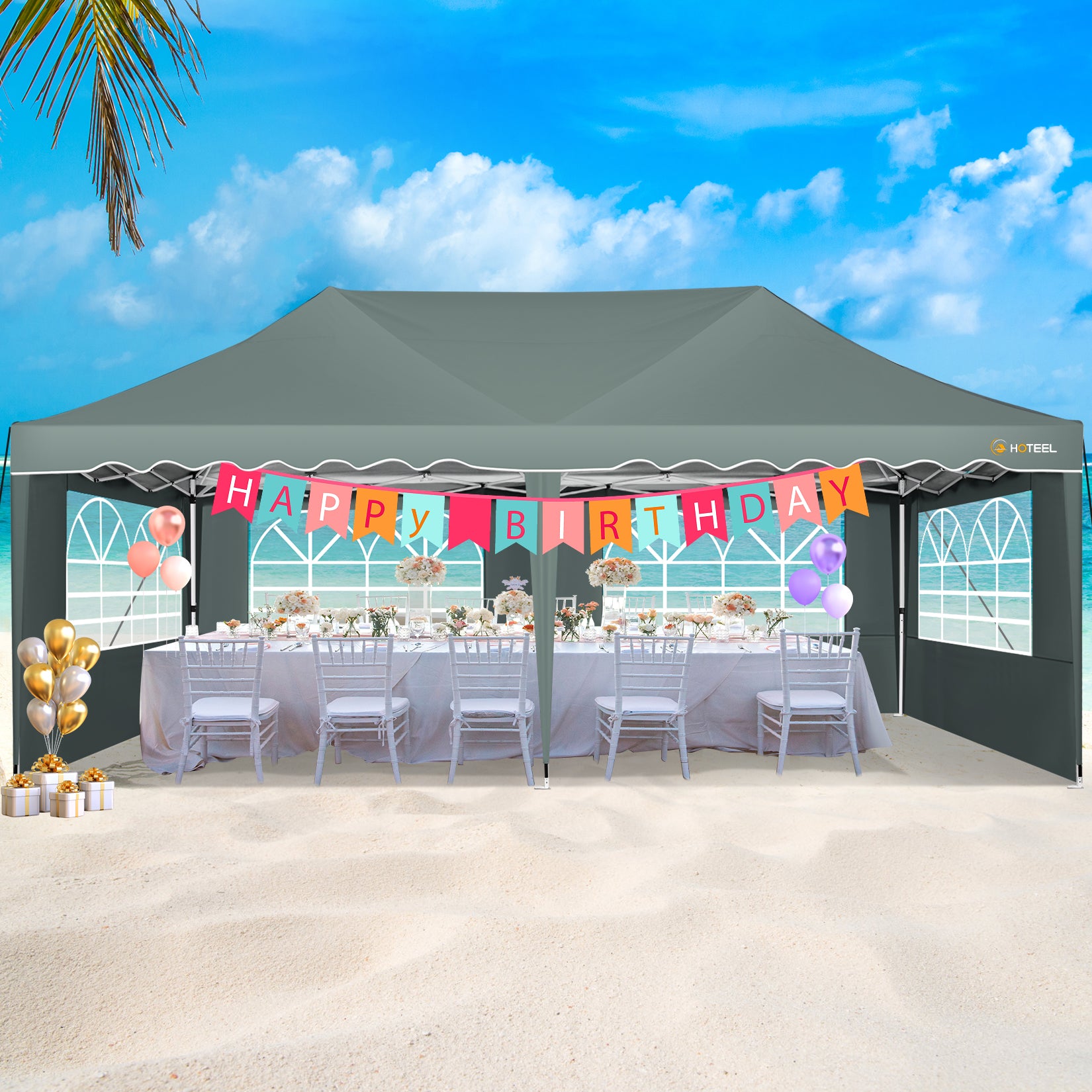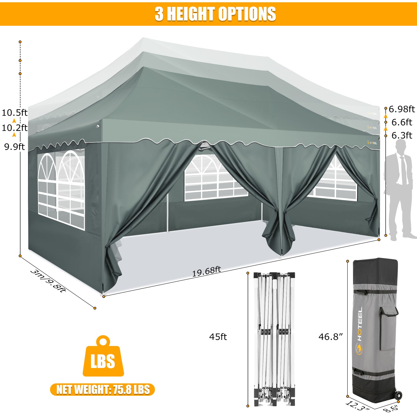- ✅ [LARGE SPACE & MULTIPURPOSE] HOTEEL 10x20 pop up canopy offers 200 square feet of spacious covered space, 3 adjustable heights to choose from, can easily accommodate 15-25 people to meet the different needs of your large gatherings.The 10x20 is perfect for weddings, birthday parties, marketing campaigns, and other large-scale events, and it can be used as a garage as well.