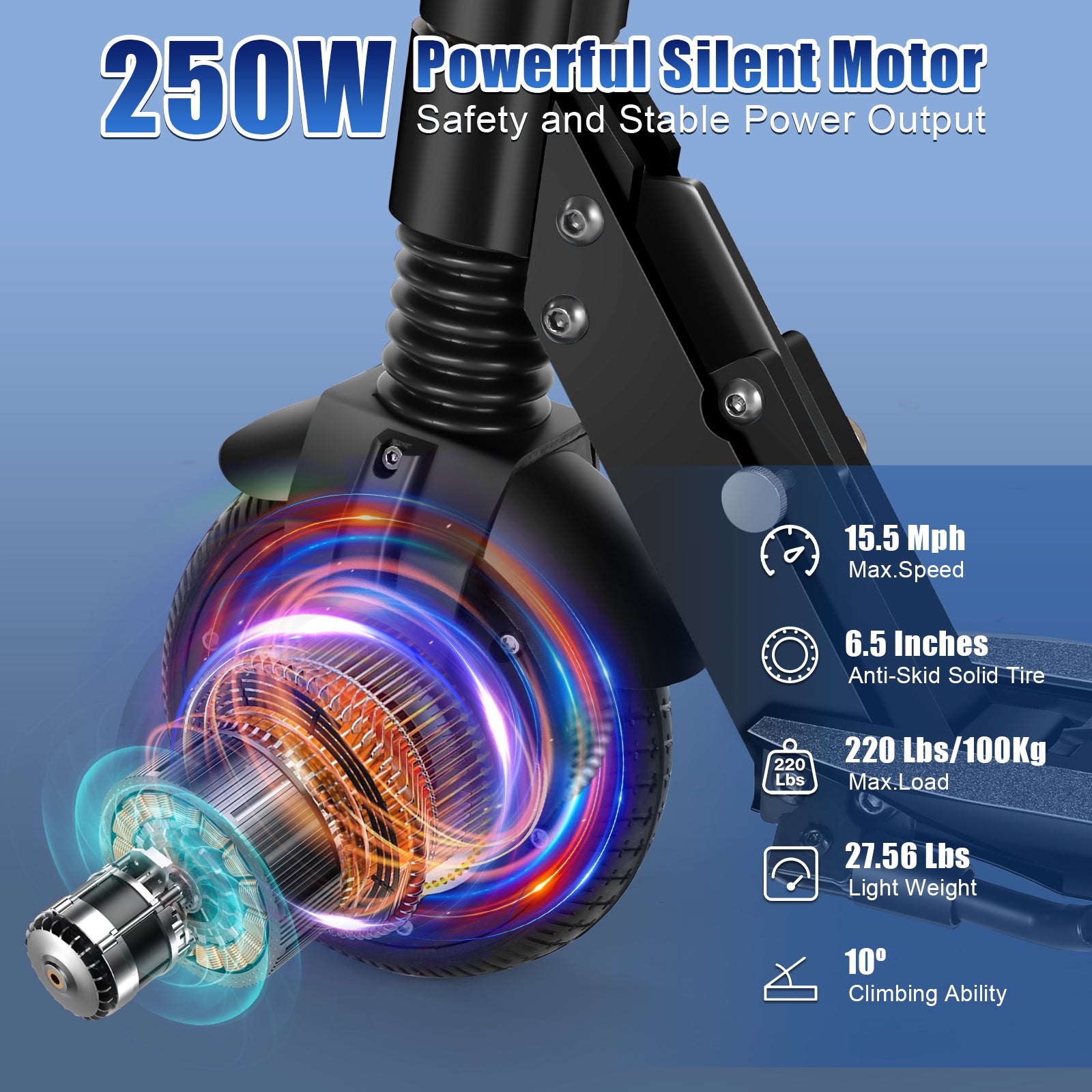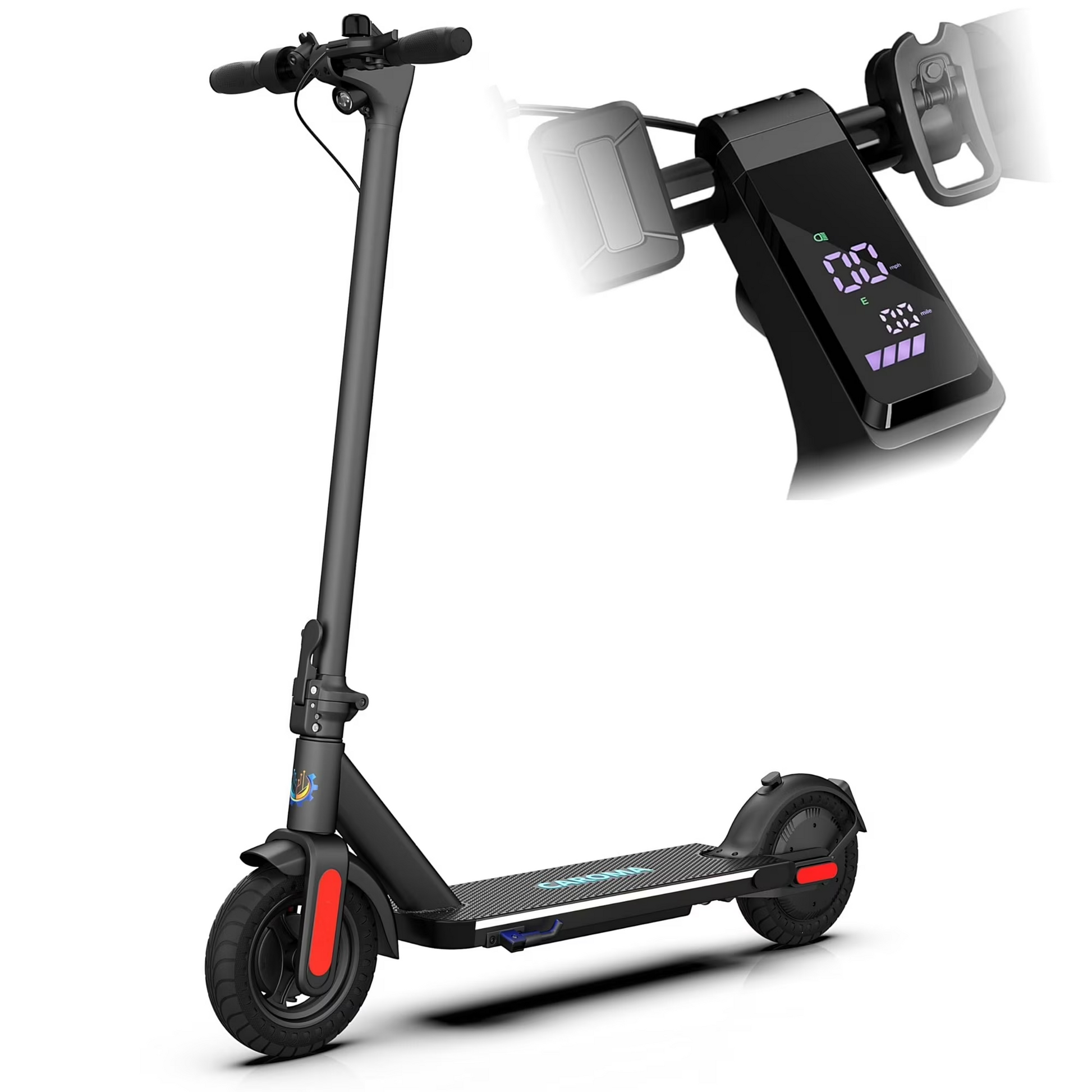 【Electric Scooter w/ Wide Deck】HOTEEL electric scooter for adults is taller, wider than others. 7.1"Wx24.4’’L wider deck and 10"x2" bigger tires provide a more comfortable riding experience. This scooter electrico can easily accommodate a load of 300 lbs on full aluminum alloy frame.