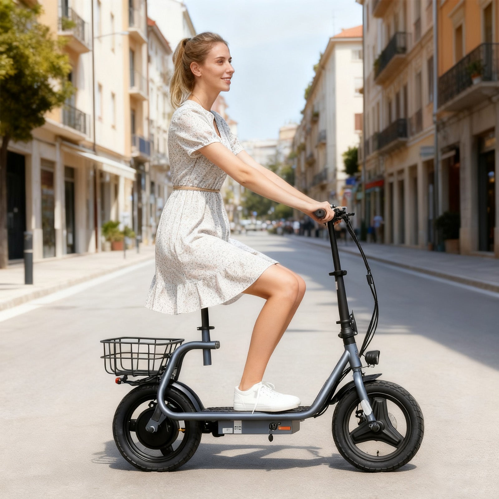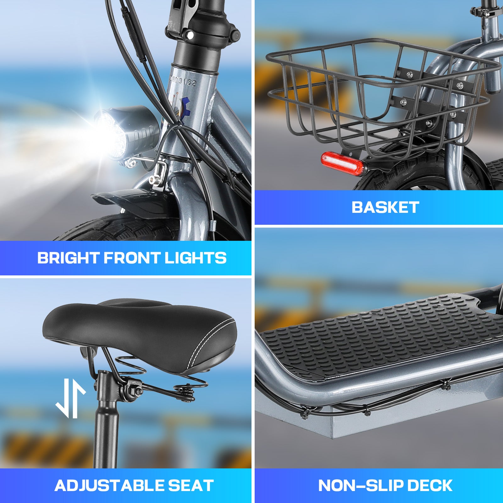 HOTEEL Electric Scooter with Seat, 819W Peak 500Wh Battery 25 Miles Range 20Mph Top Speed, Foldable Electric Scooter for Adults with Basket