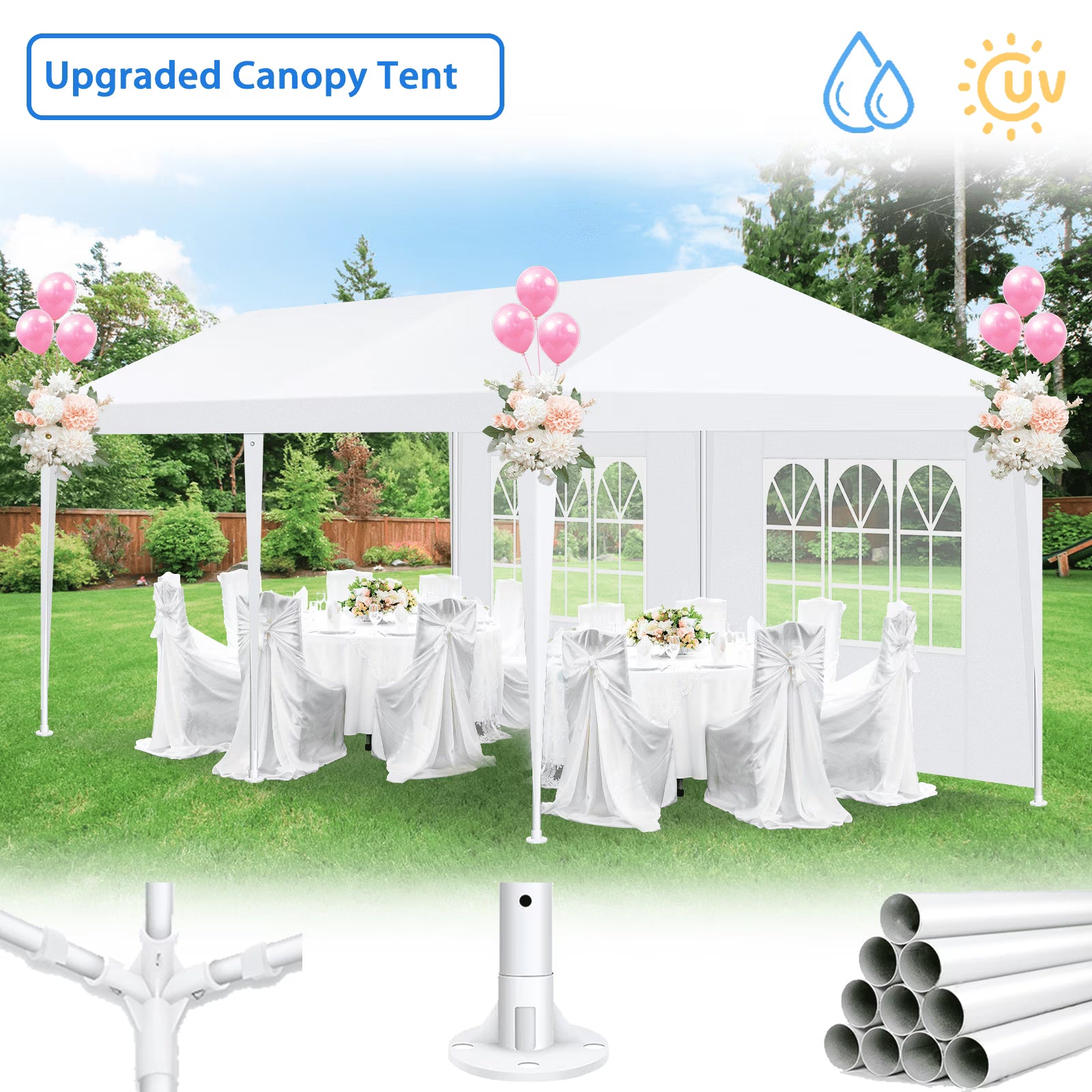 - ✔️ Spacious 10×20ft Design – Accommodates up to 45 guests or 2 round tables, perfect for parties, weddings, and business events.