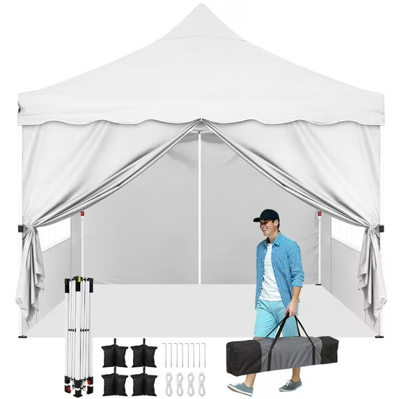 Visit the COBIZI Store COBIZI 10x10 Pop up Canopy with 4 Removable Sidewalls, Sandbags, Stakes & Ropes, Upf 50+ Easy Setup Canopy Tent Waterproof Outdoor Instant Portable Shelter for Business, Events, Vendor, White