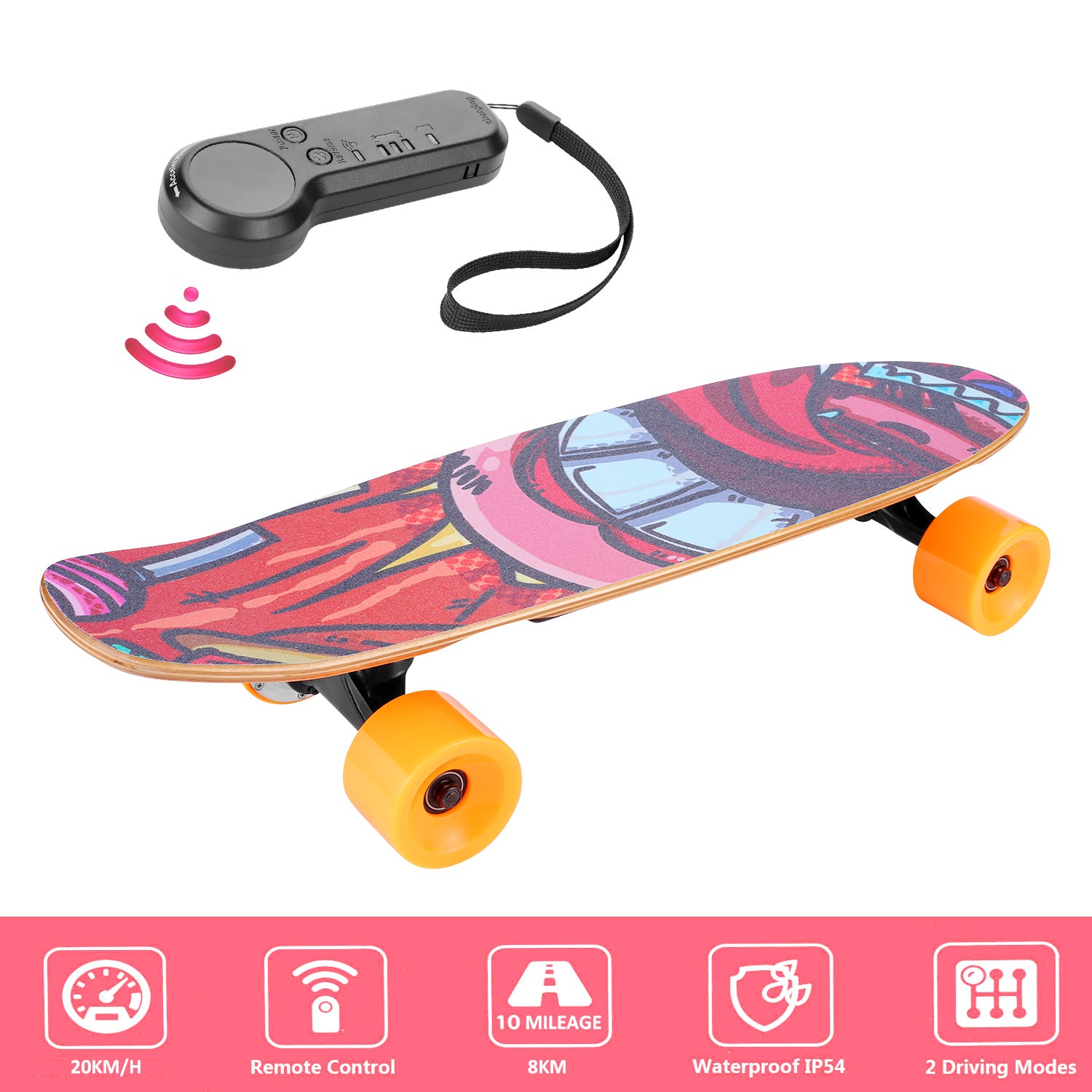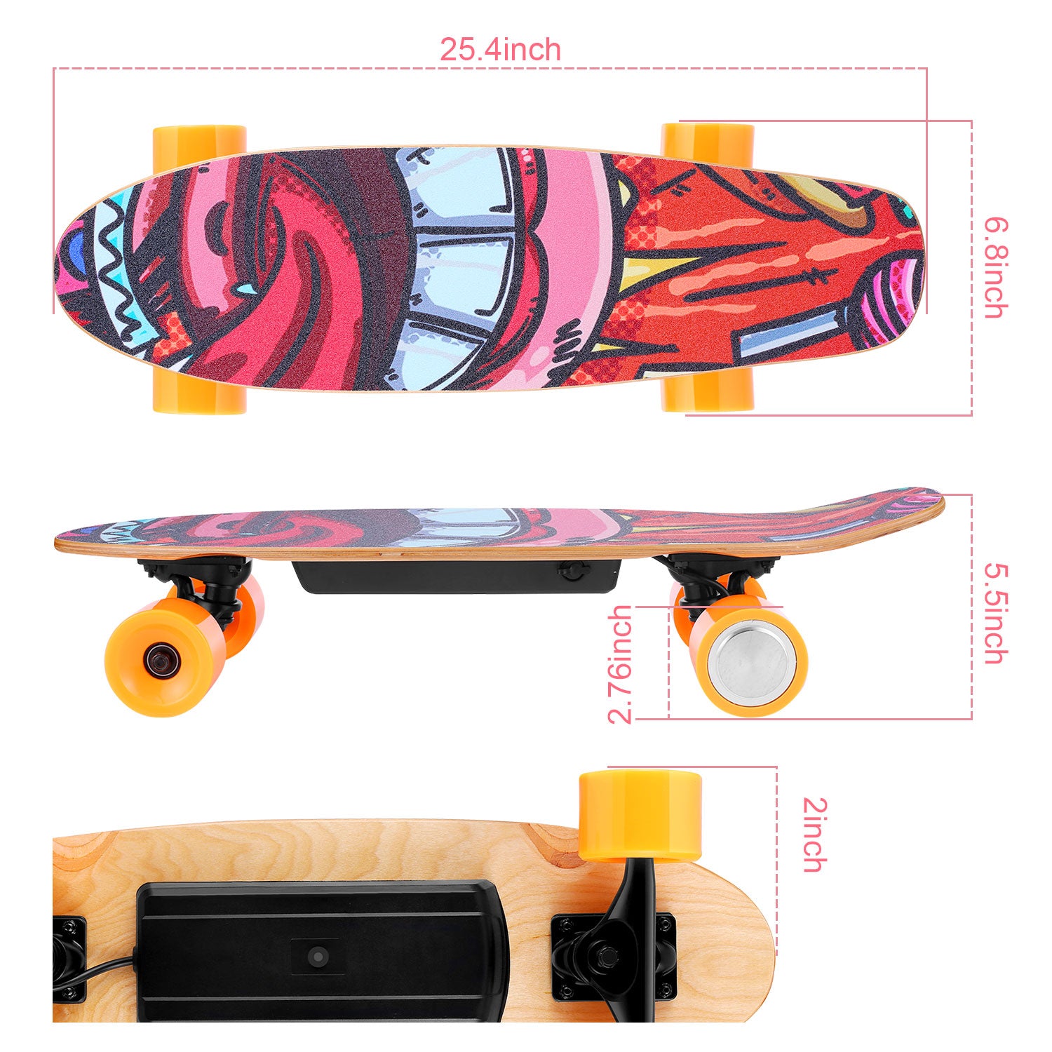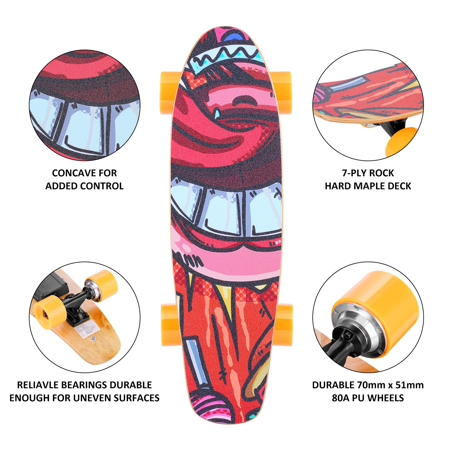 YUEBO Electric Skateboard with Wireless Remote Control, 350W, Max 12.4 MPH, 7 Layers Maple E-Skateboard, 3 Speed Adjustment for Adults, Teens, and Kids, Orange